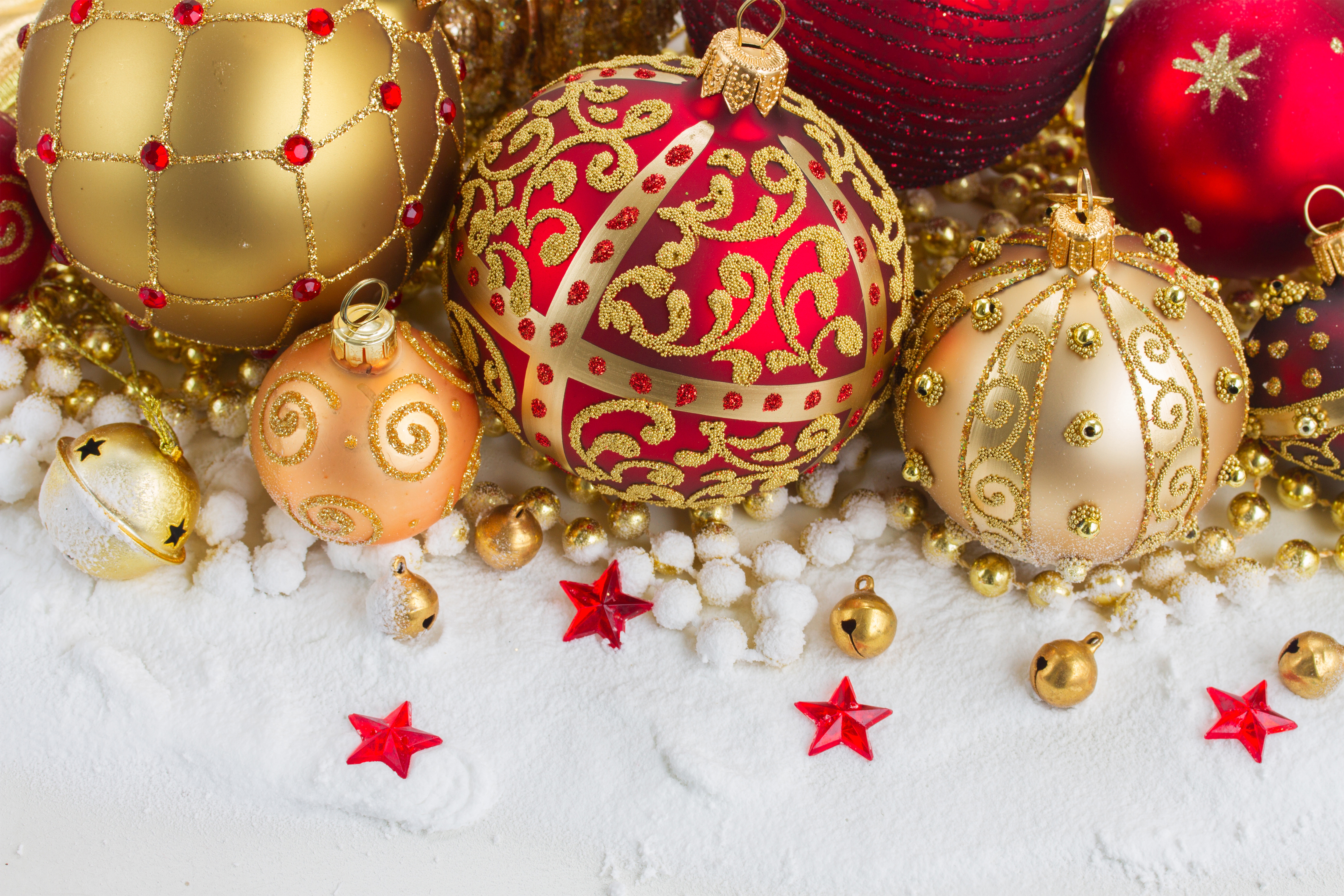 This Background: "Christmas Background with Yellow and Red Ornaments" is part of