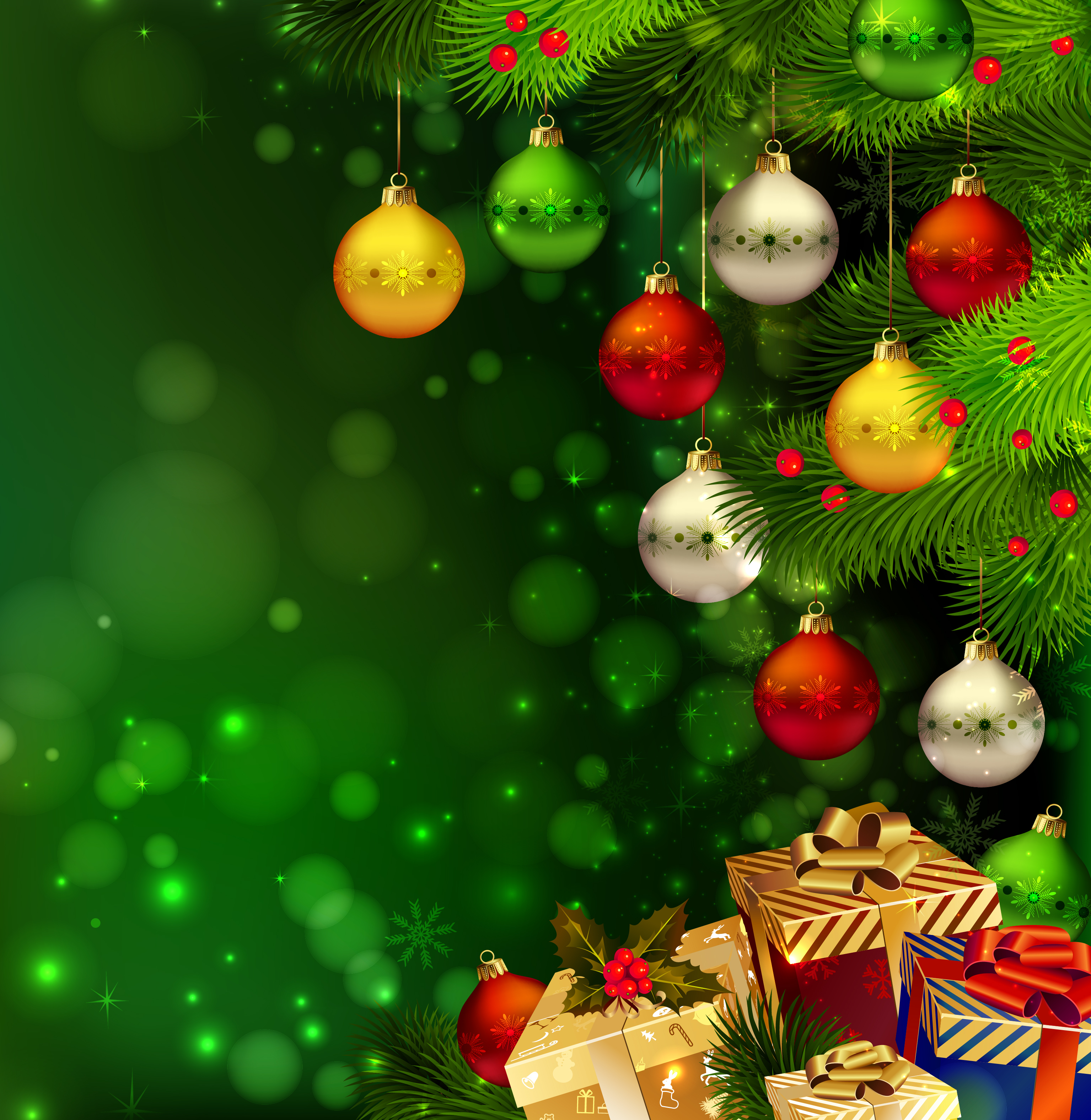 This Background: "Green Christmas Background with Gifts and Ornaments" is part of