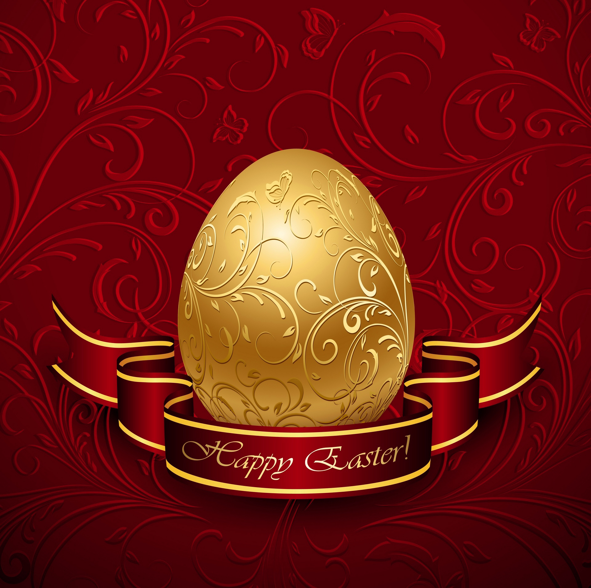 This Background: "Happy Easter with Gold Egg Red Background" is part of