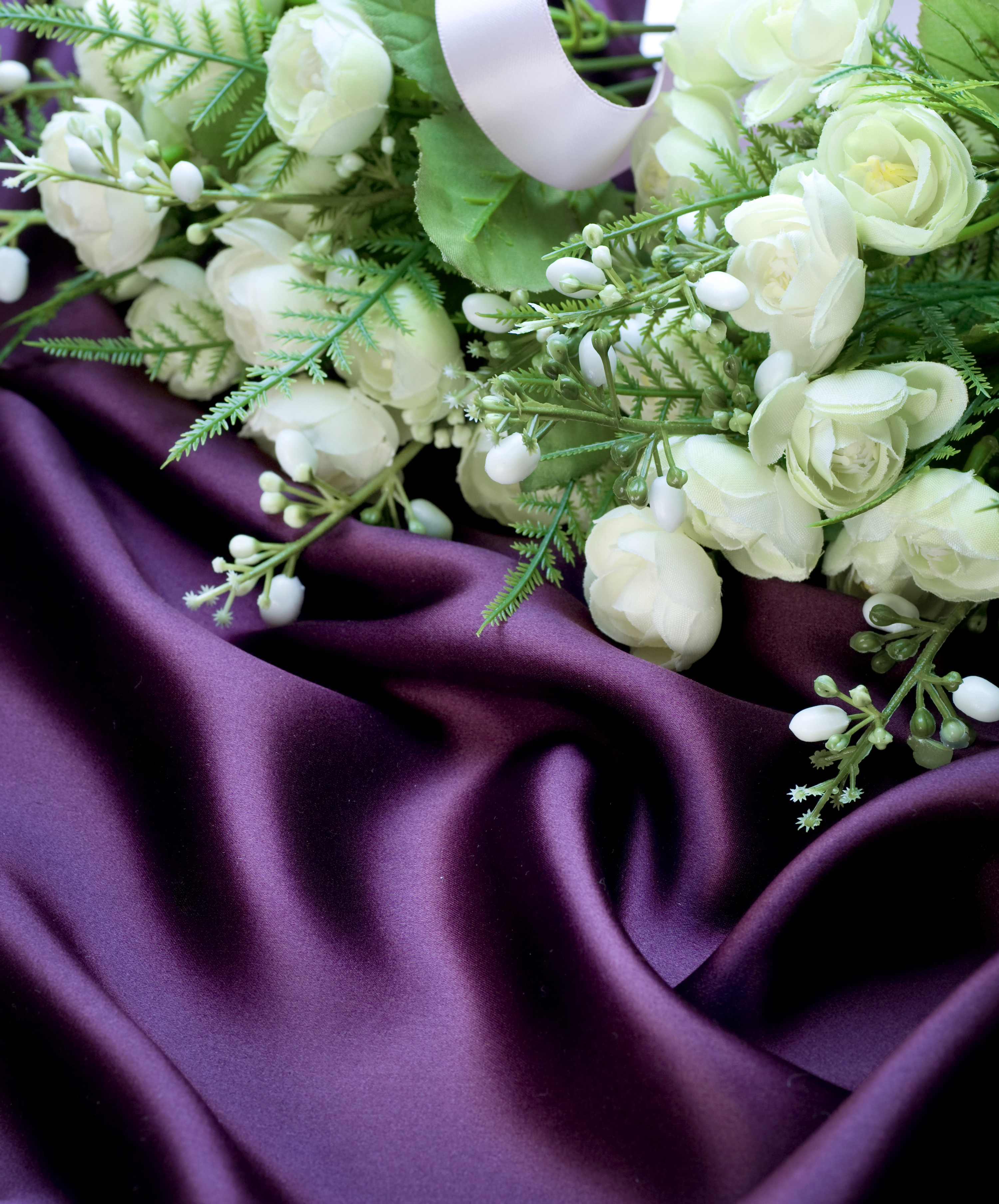 This Background: "Purple Satin with White Flowers Background" is part of