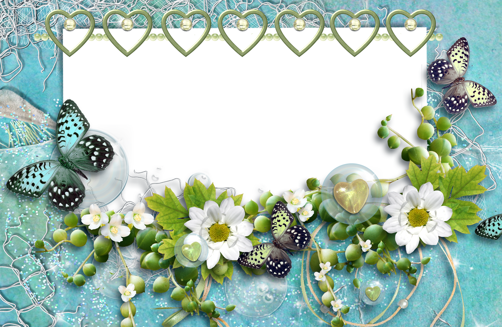 This Frame: "Aquamarine Transparent Frame with Butterflies Hearts and Flowers" is part of