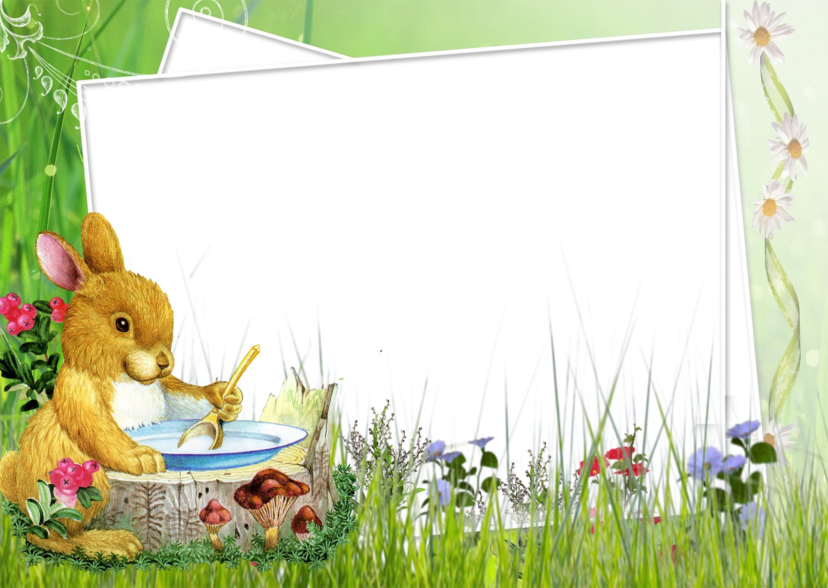 This Frame: "Kids Transparent Photo Frame with Green Cute Bunny" is part of