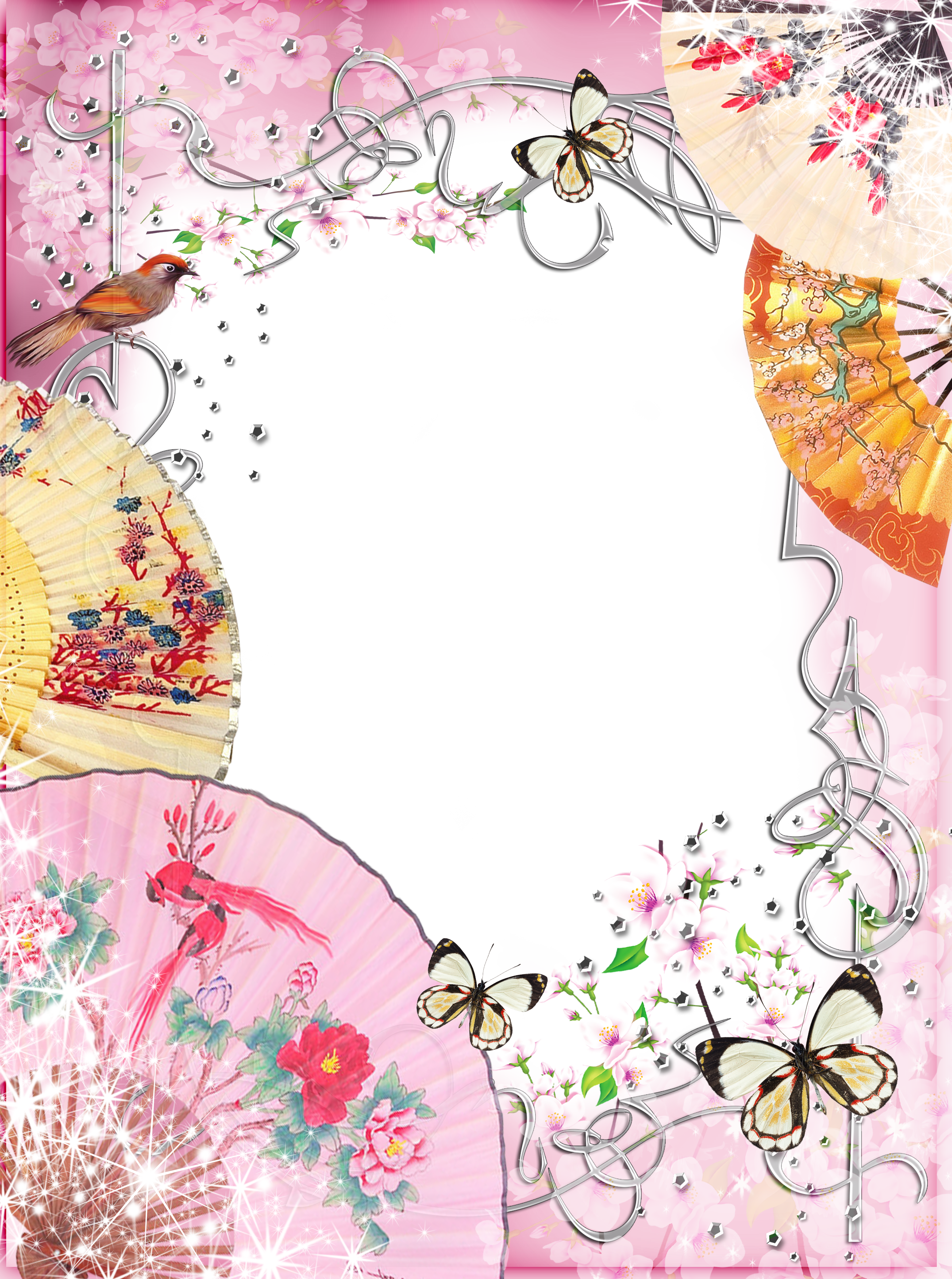 This Frame: "Pink Transparent Frame with Fans and butterflies" is part of