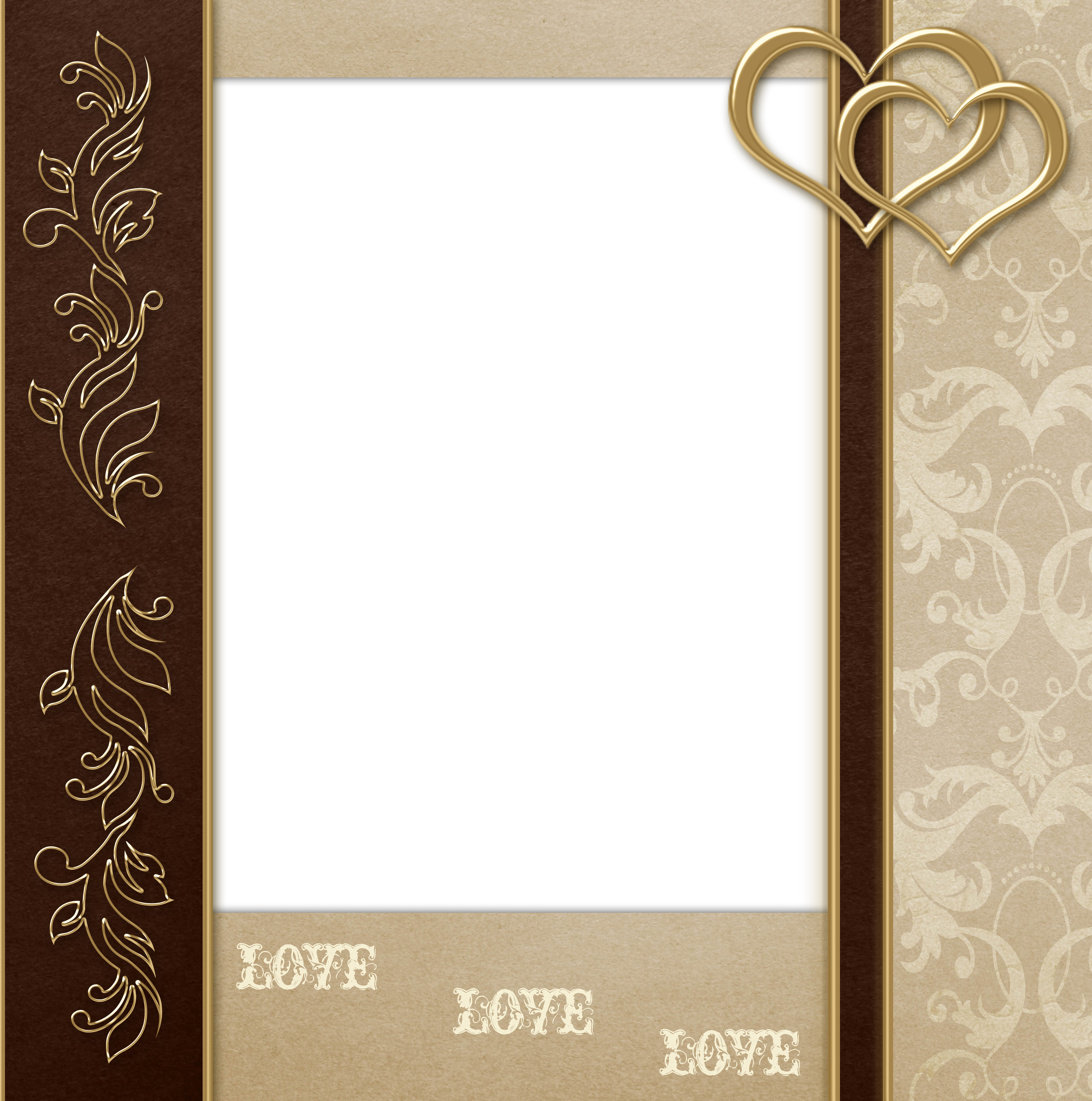This Frame: "Stylish Transparent Brown and Gold Hearts PNG Frame" is part of