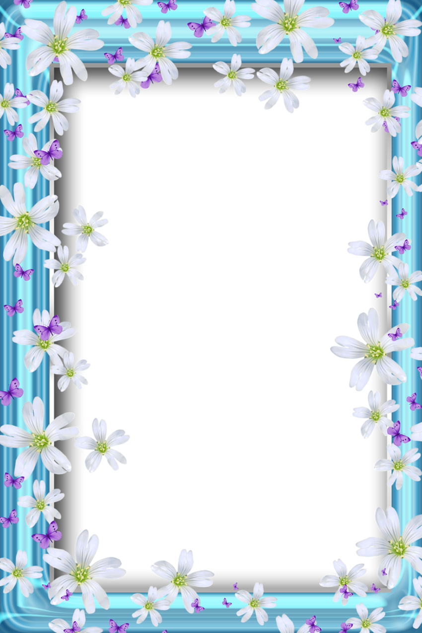 This Frame: "Transparent Bue PNG Frame with Flowers and Butterflies" is part of