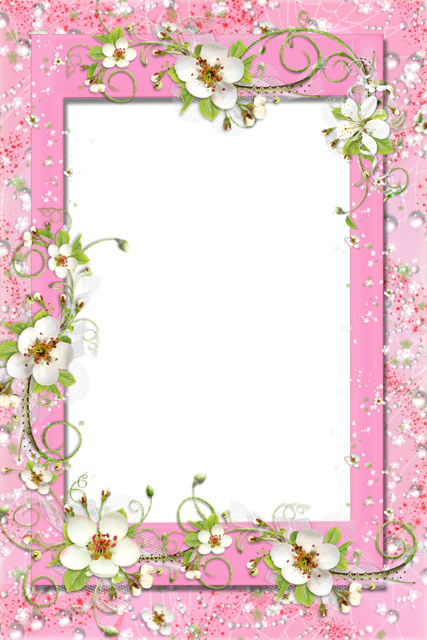 This Frame: "Transparent Pink PNG Frame with Flowers" is part of