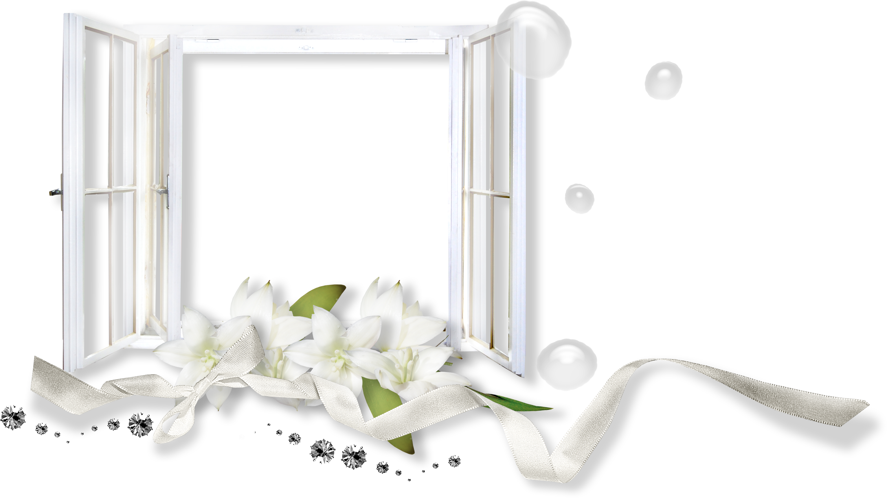 This Frame: "White Window with White Flowers Transparent Frame" is part of