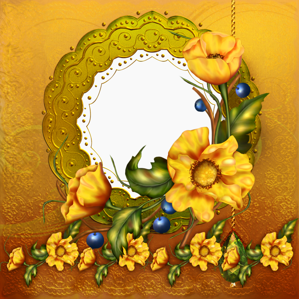 This Frame: "Yellow PNG Photo Frame with Flowers" is part of