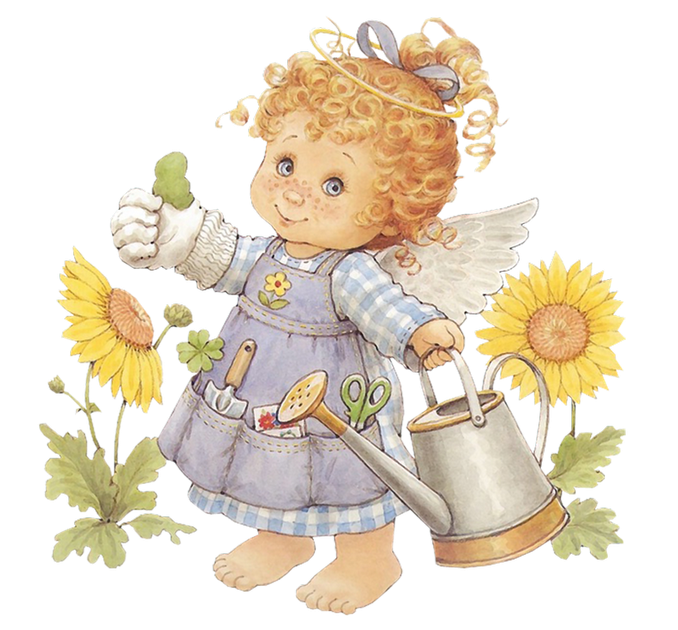 This Clipart Image: "Cute Angel Gardener with Watering Can Free PNG Clipart" is part of