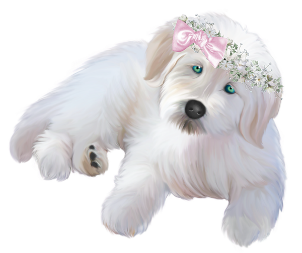 This Clipart Image: "White Puppy with Pink Ribbon Clipart" is part of
