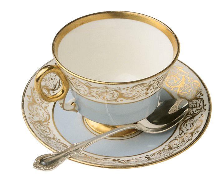 This Clipart Image: "Blue and Gold Tea Cup with Teaspoon Large Transparent Clipart" is part of