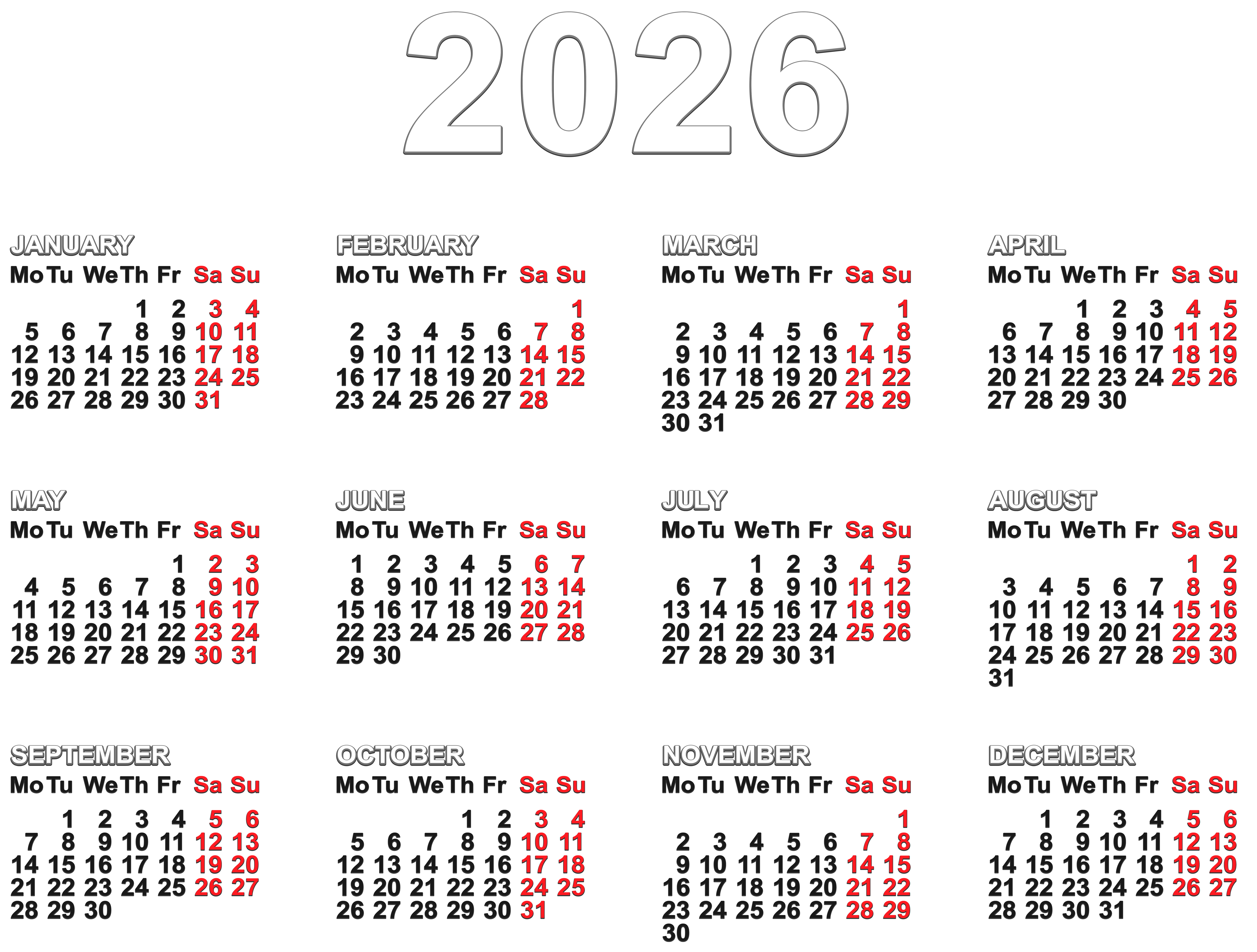 This Clipart Image: "2026 Calendar EU PNG Clipart" is part of
