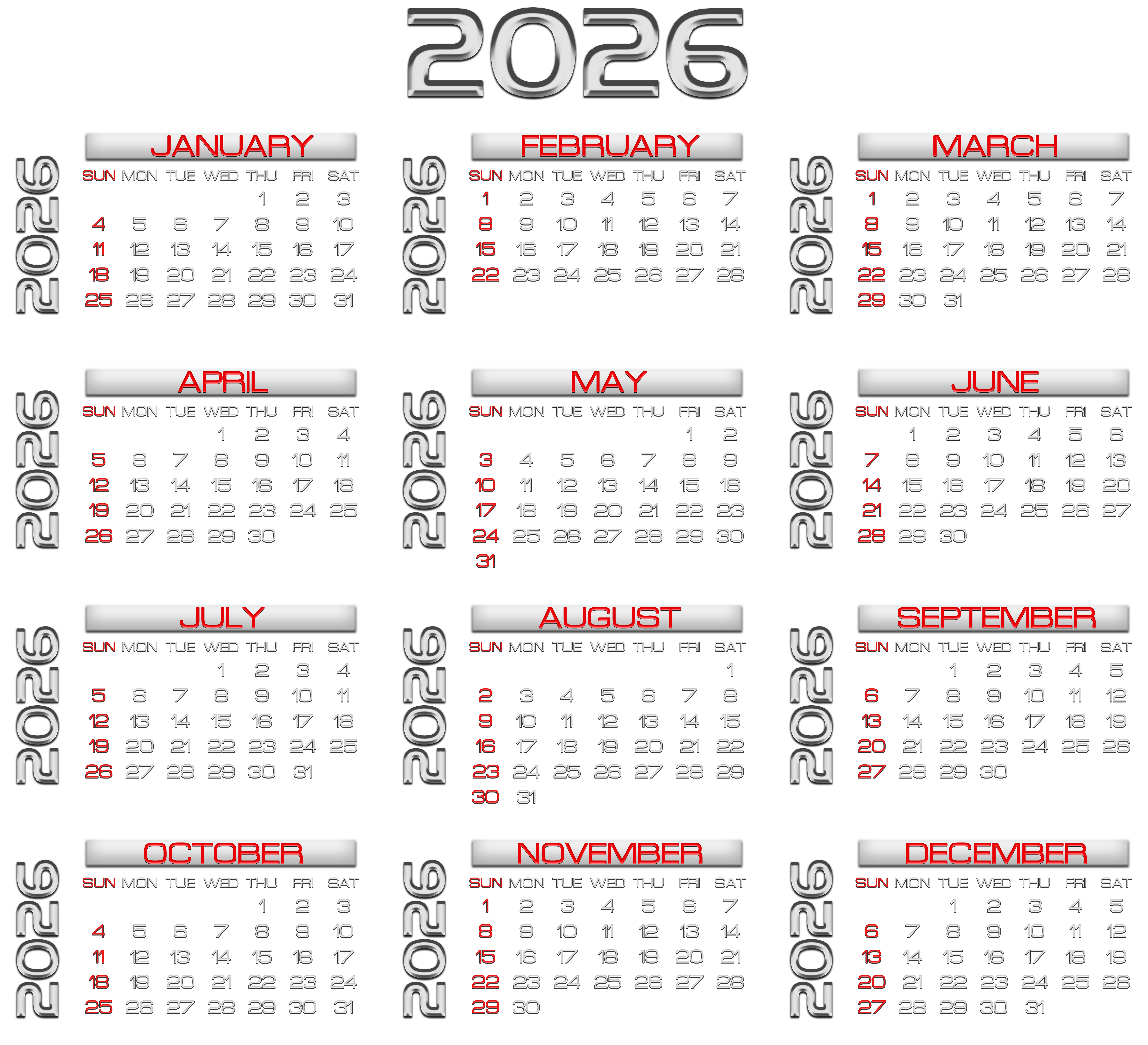 This Image: "2026 Calendar Mtallic Transparent Image" is part of