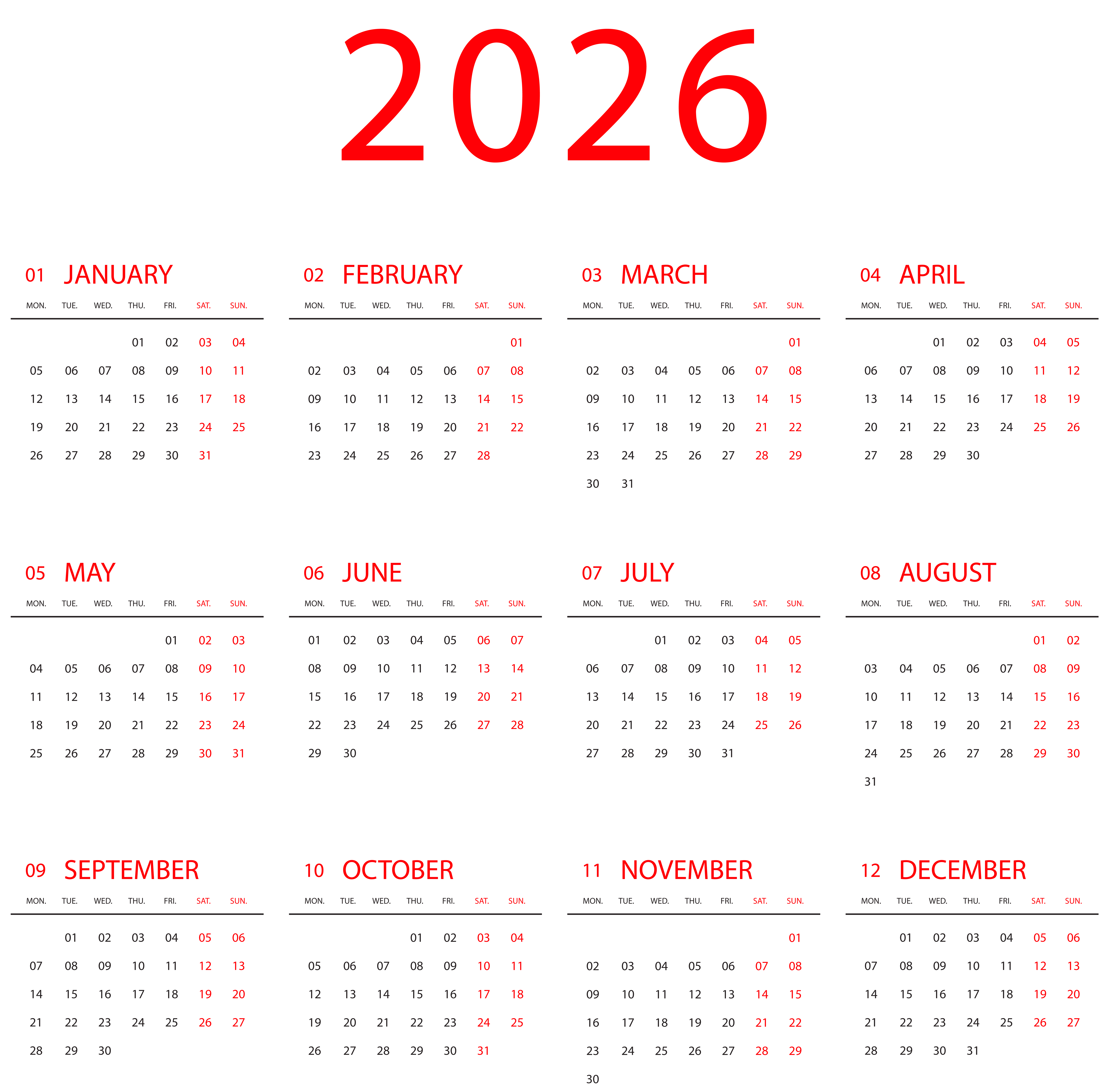 This Clipart Image: "2026 Calendar Transparent PNG Clipart" is part of