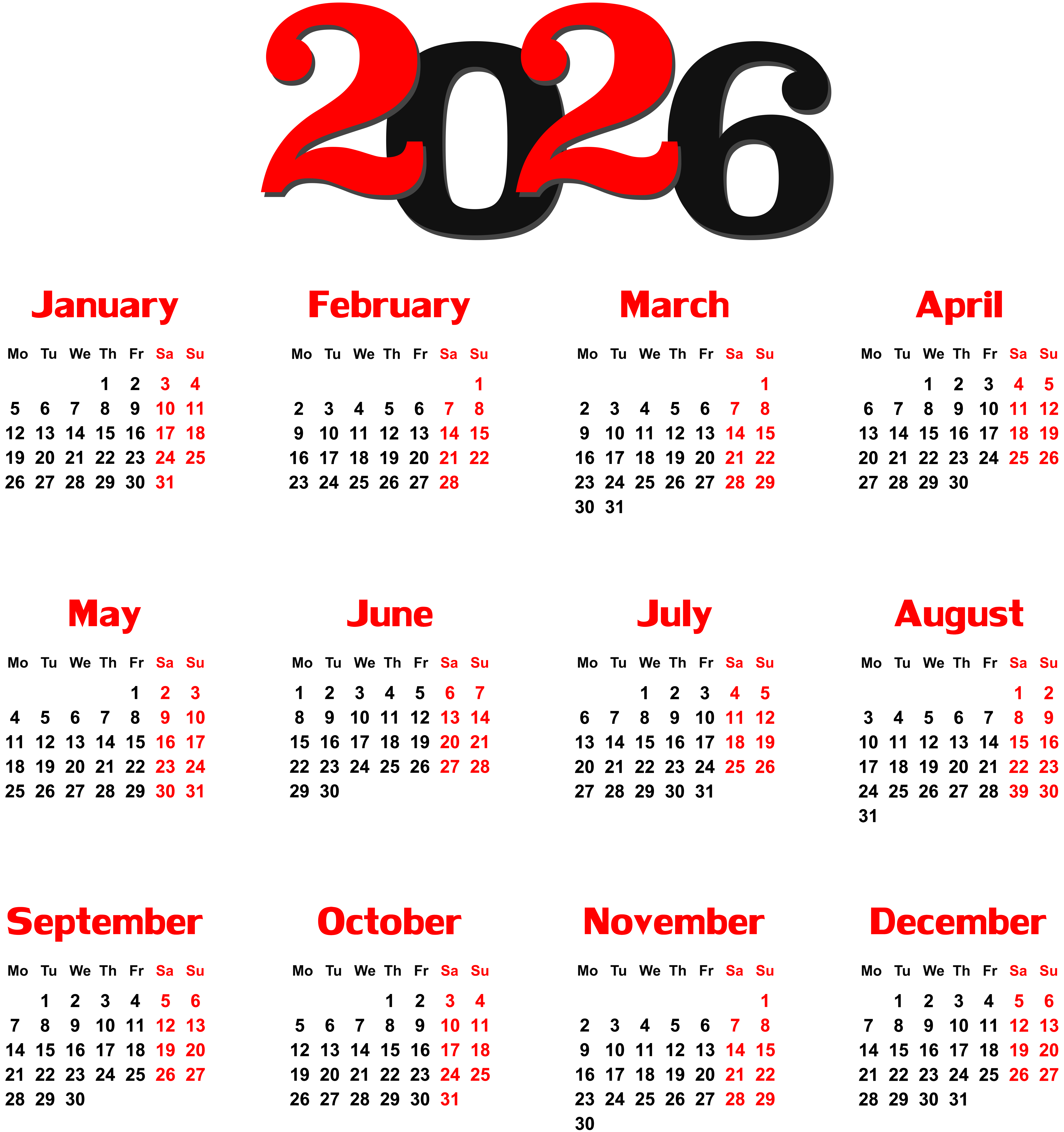 This Clipart Image: "2026 EU Calendar Black Transparent PNG Clip Art" is part of