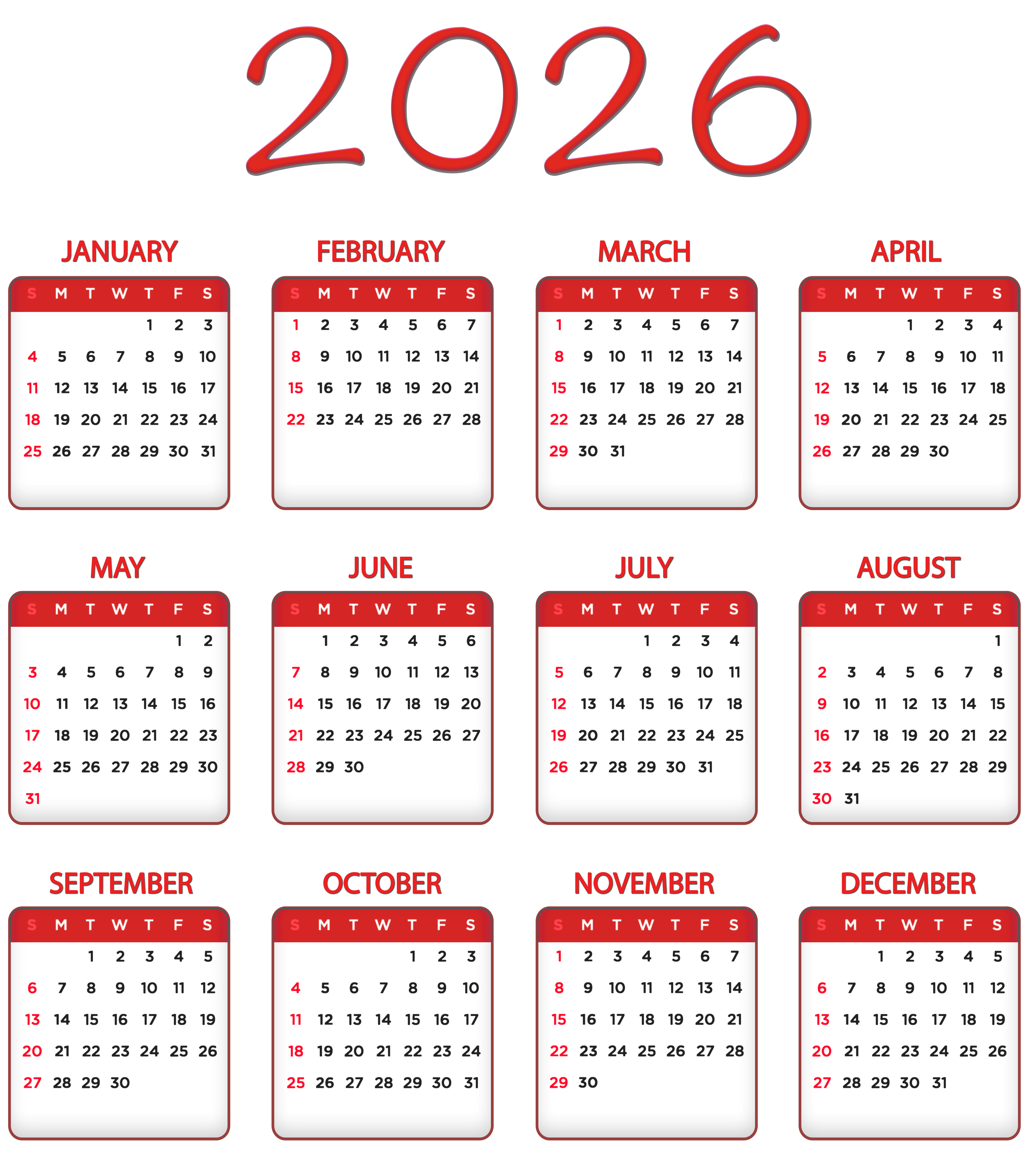 This Image: "2026 Red Calendar Transparent Image PNG" is part of