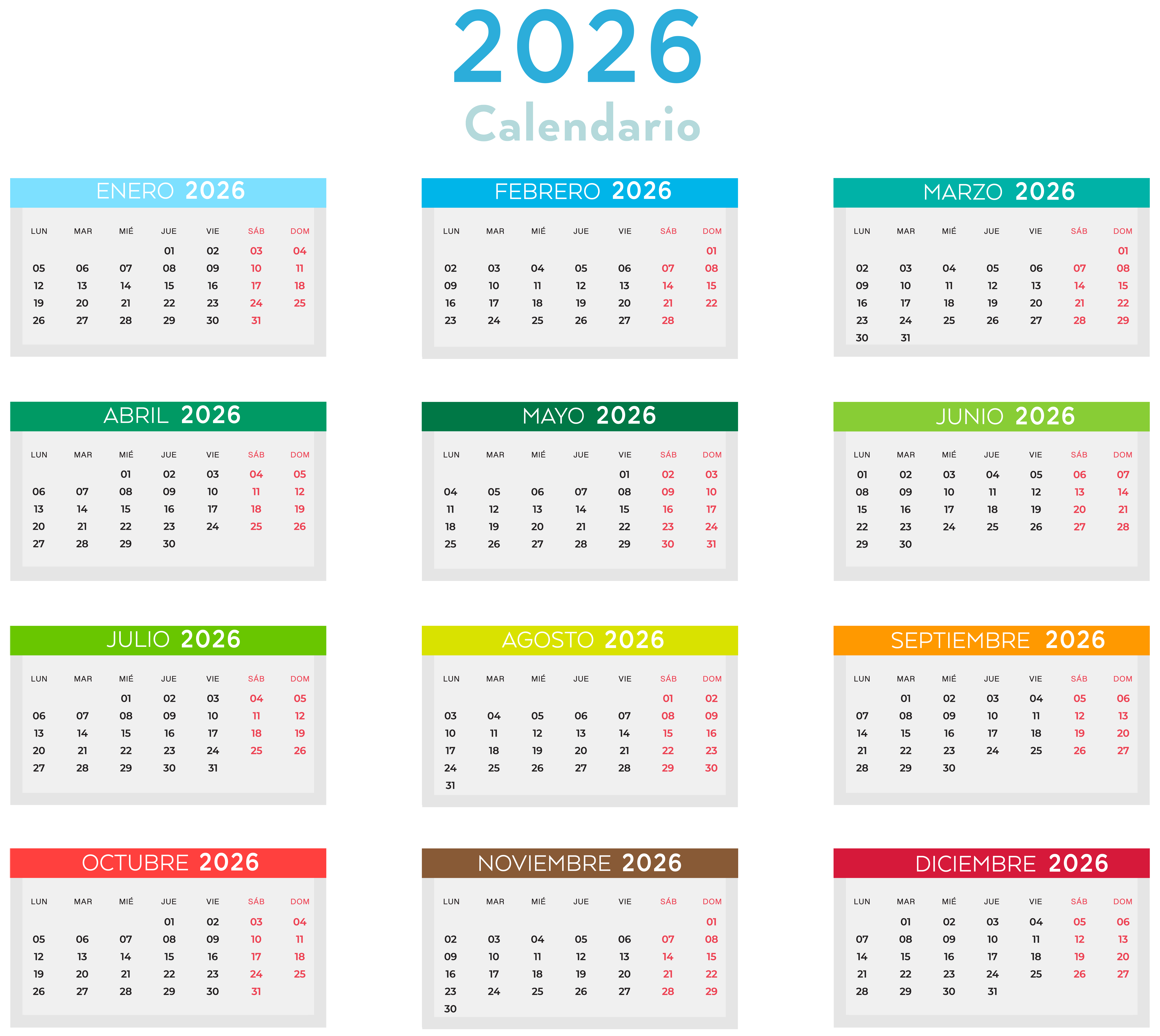 This Clipart Image: "2026 Spanish Calendar with Colors PNG Clipart" is part of