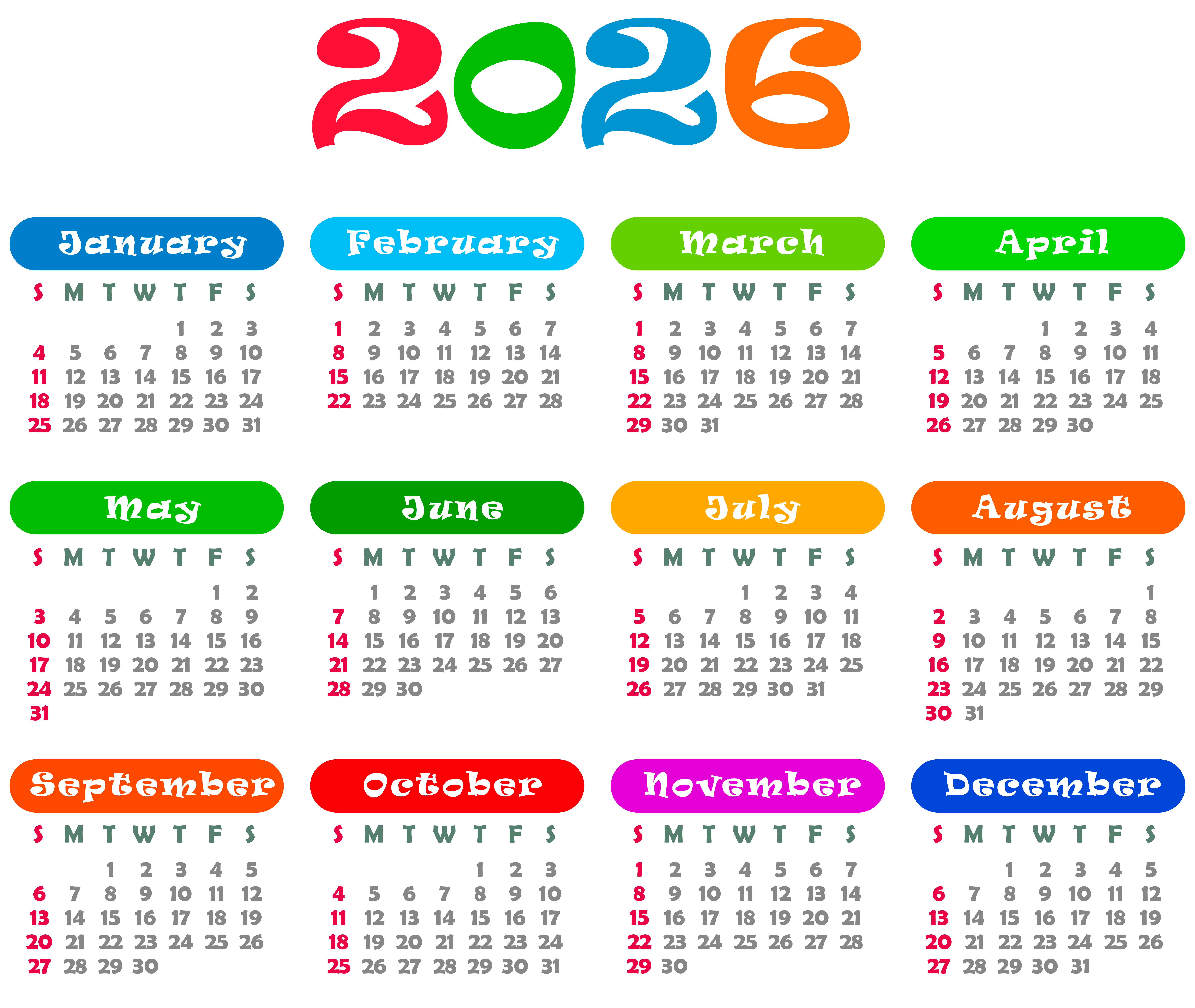 This Image: "2026 US Colorful Calendar Transparent PNG Image" is part of