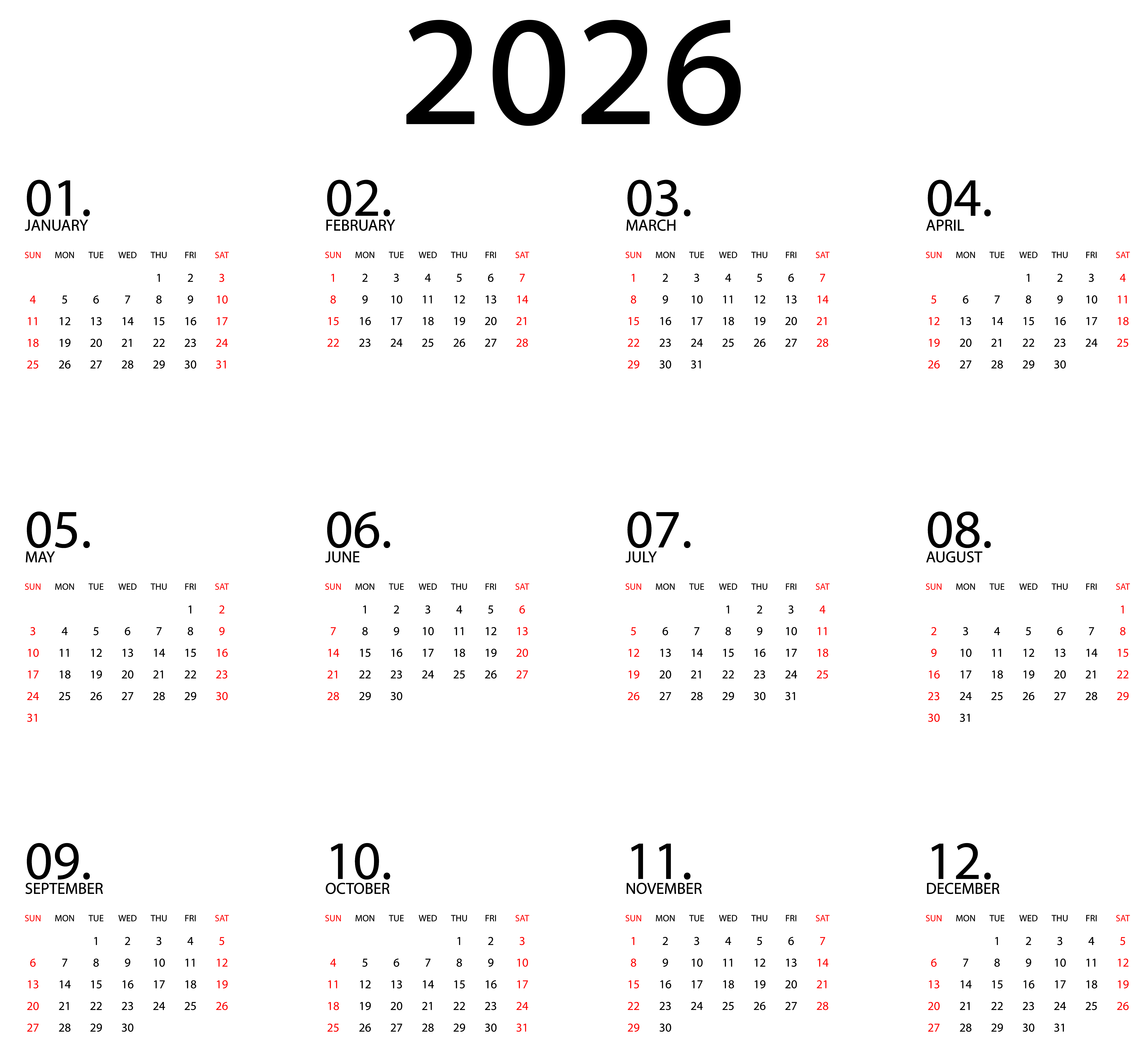 This Clipart Image: "Calendar 2026 Black Transparent Clipart" is part of