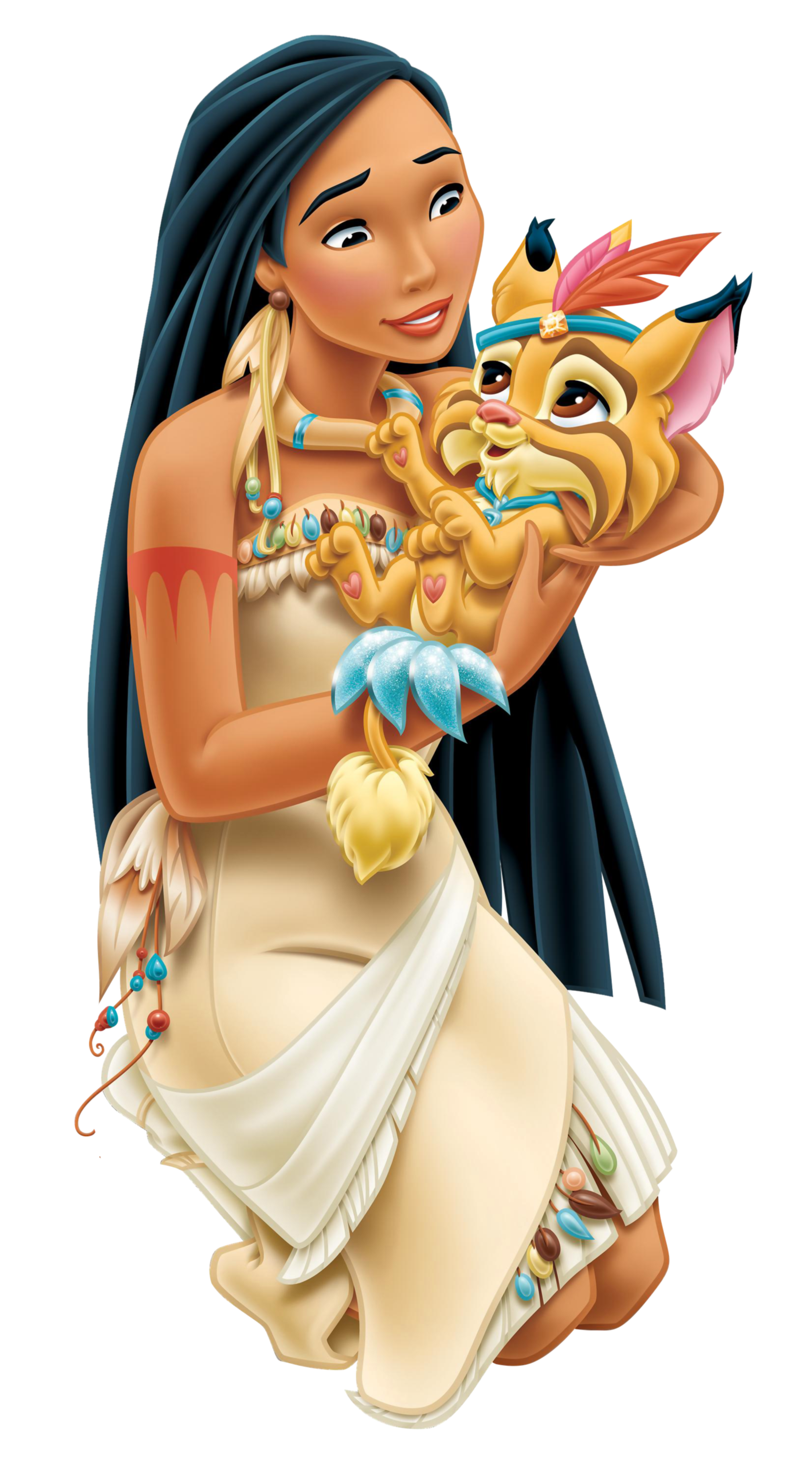 This Clipart Image: "Disney Princess Pocahontas with Little Tiger Transparent PNG Clip Art Image" is part of