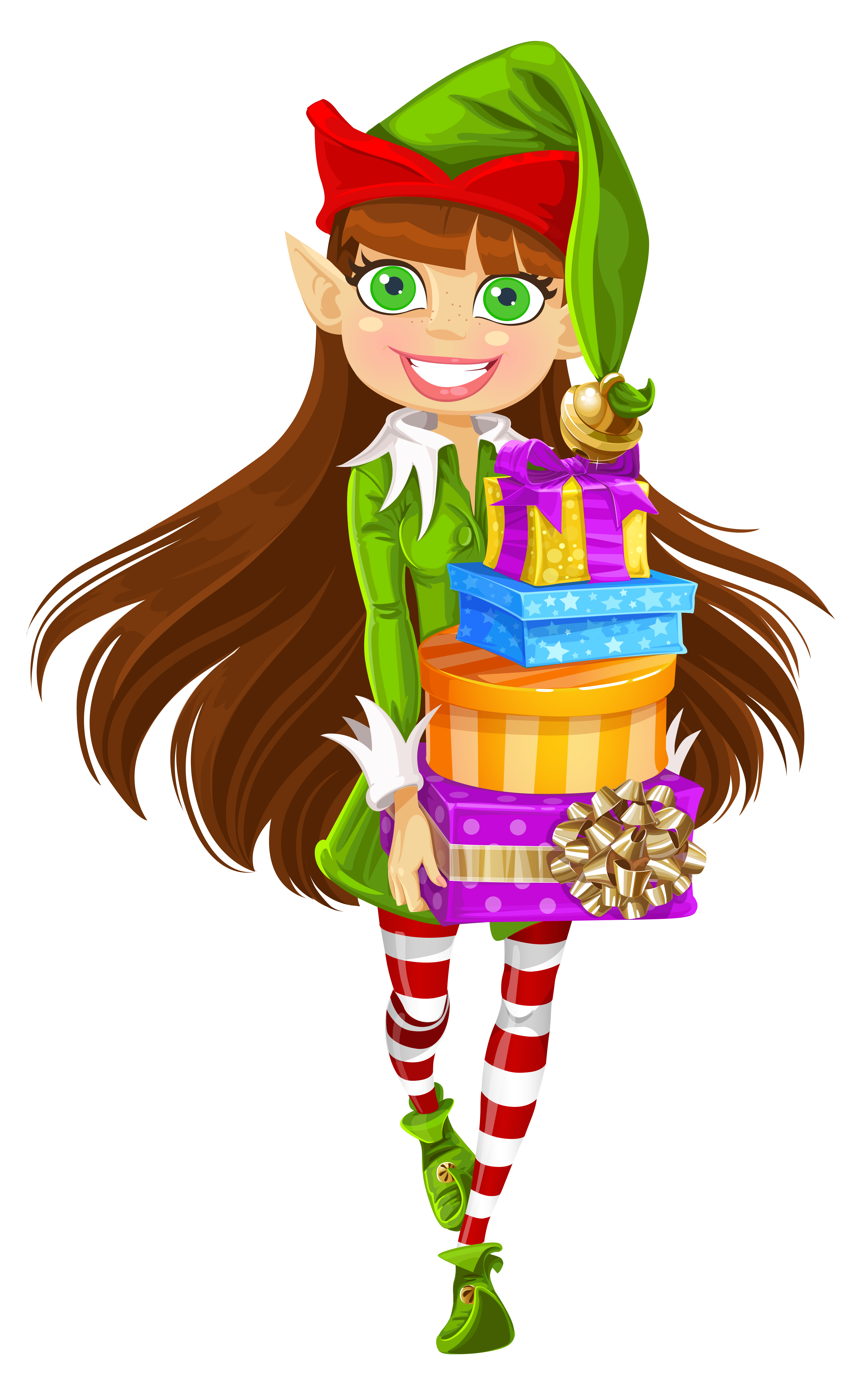 This Image: "Christmas Girl Elf with Gifts PNG Picture" is part of
