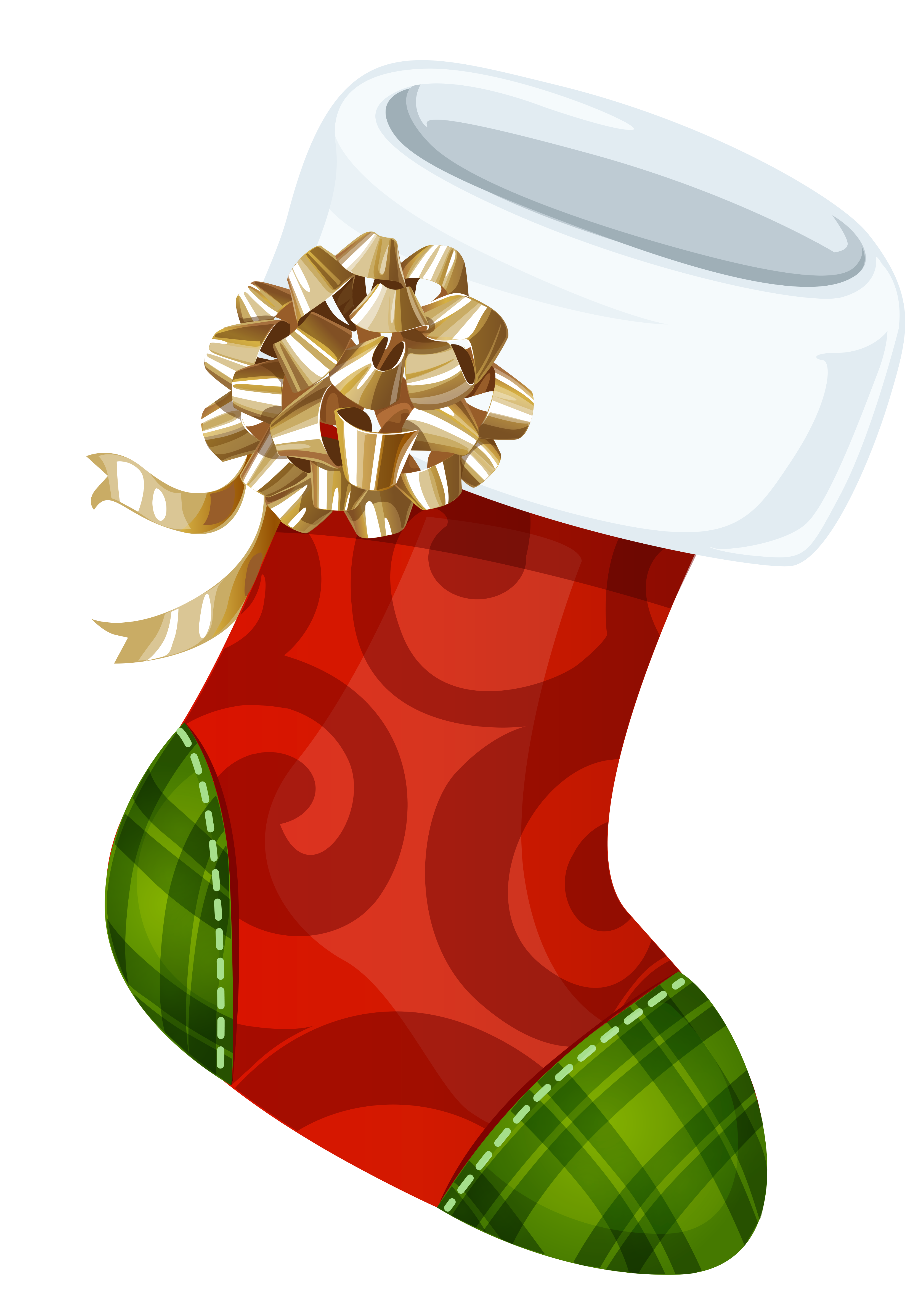 This Image: "Christmas Stocking with Gold Bow PNG Picture" is part of
