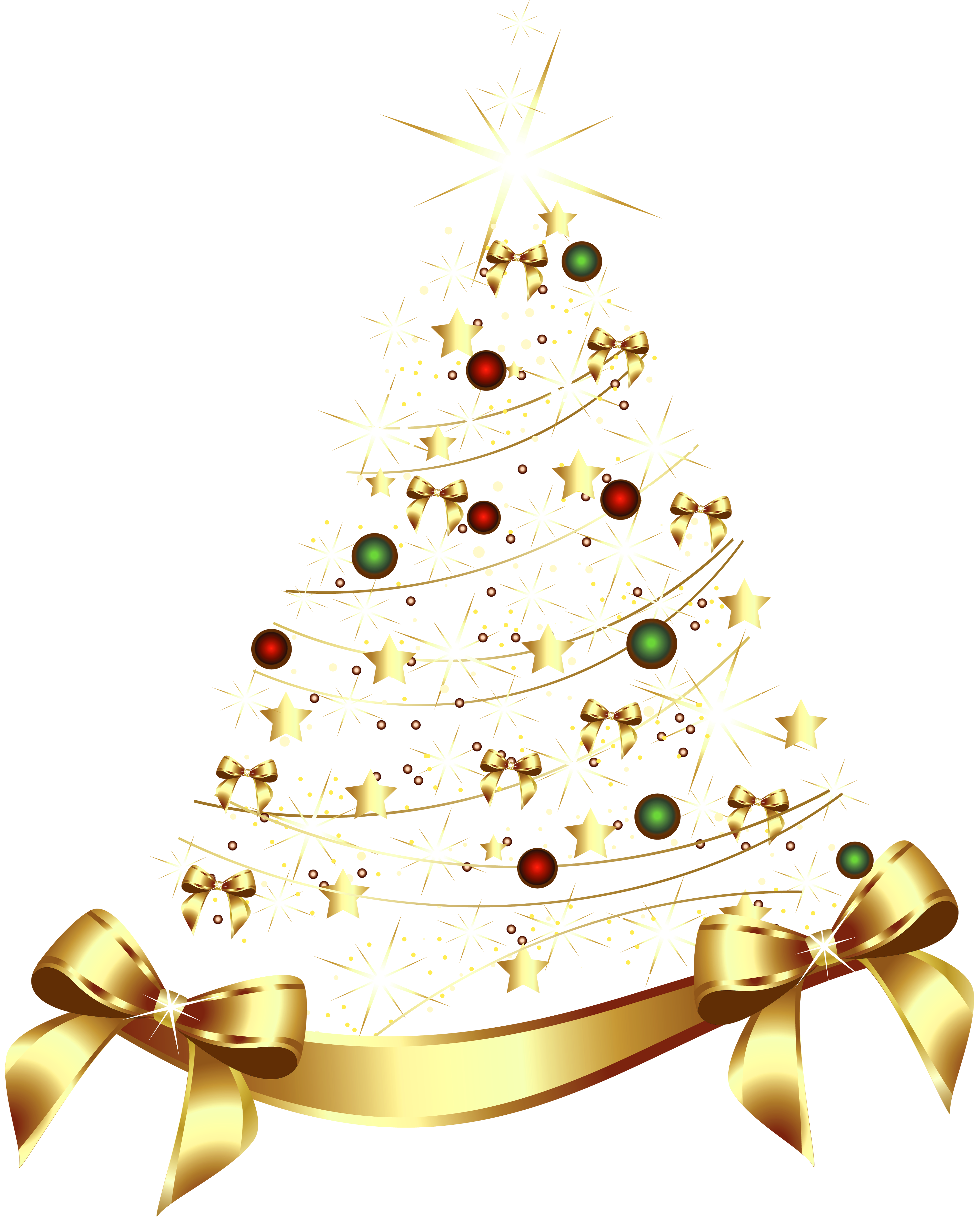 This Clipart Image: "Large Transparent Gold Christmas Tree with Gold Bow PNG Clipart" is part of