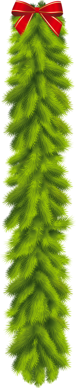 This Clipart Image: "Transparent Christmas Pine Garland with Red Bow Clipart" is part of