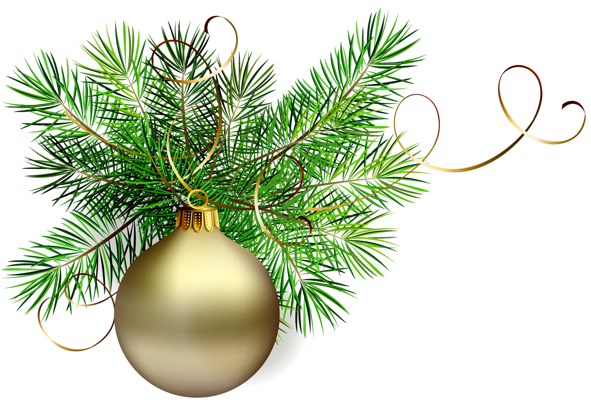 This Clipart Image: "Transparent Gold Christmas Ball with Pine Clipart" is part of