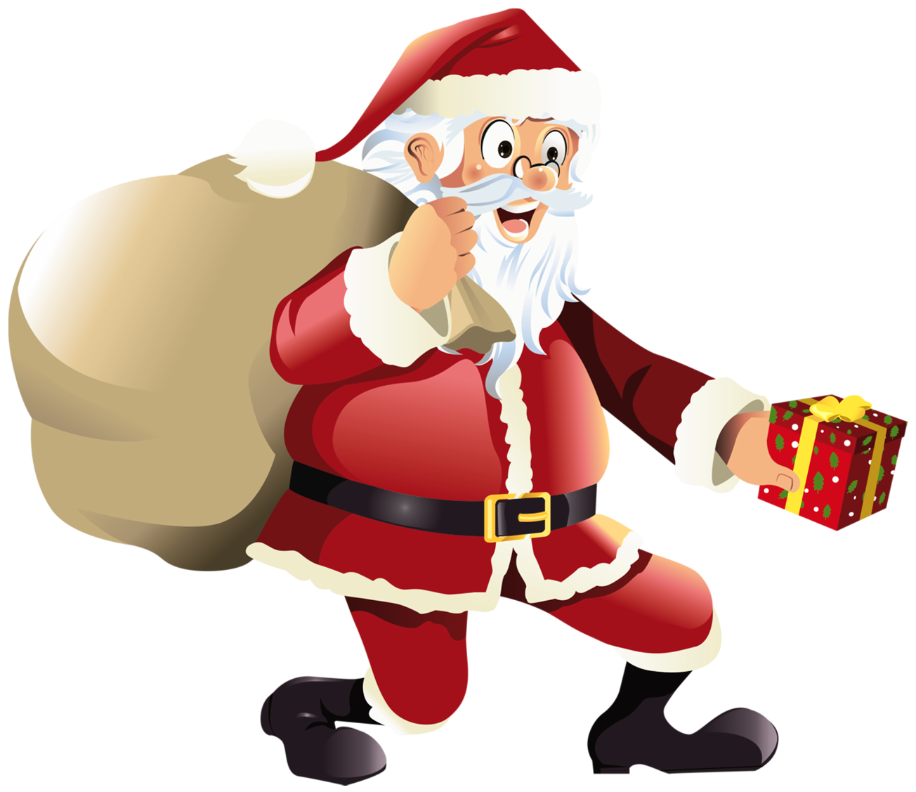 This Clipart Image: "Transparent Santa Claus with Red Gift PNG Clipart" is part of