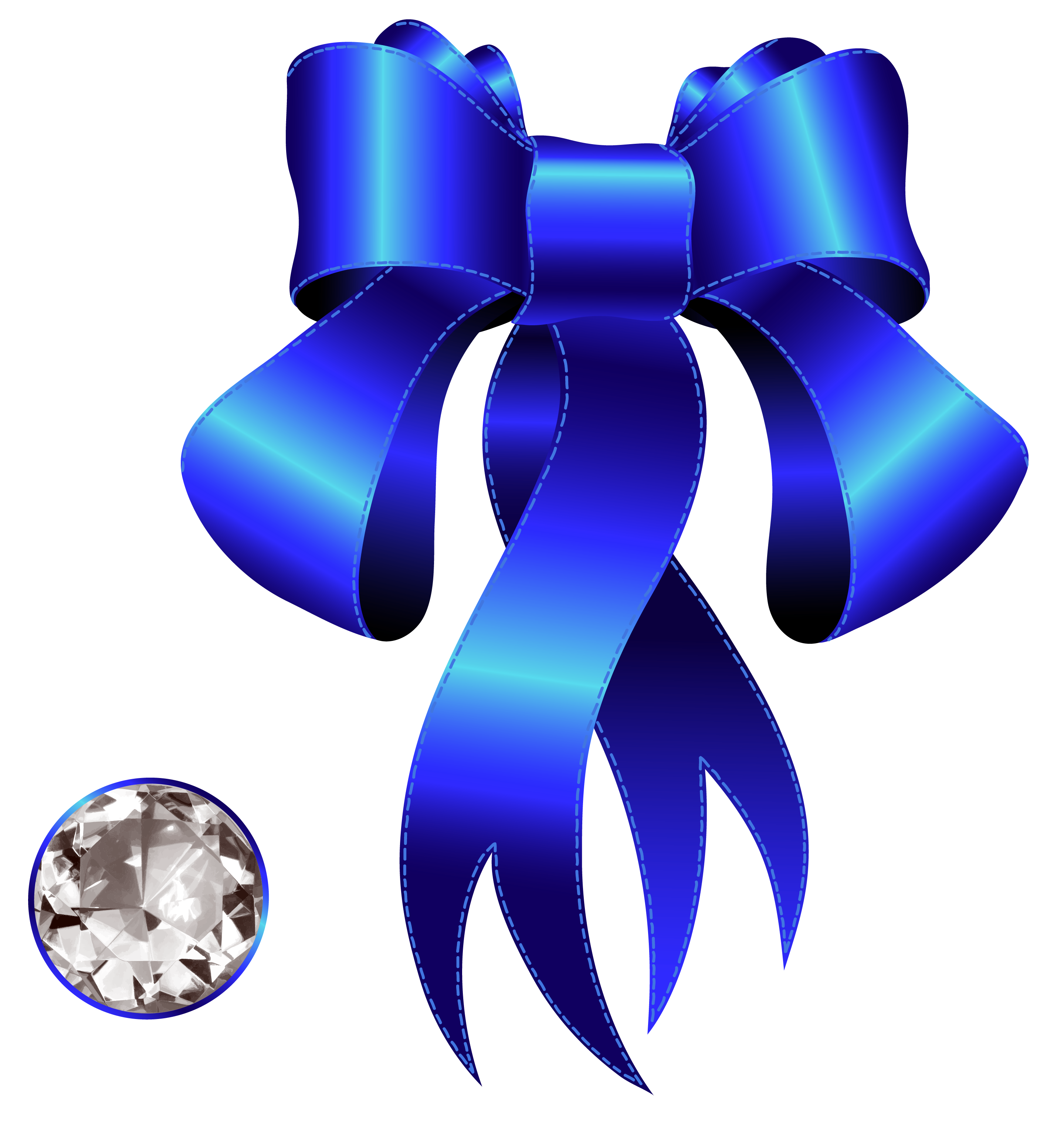 This Clipart Image: "Blue Decorative Bow with Diamond PNG Clipart" is part of