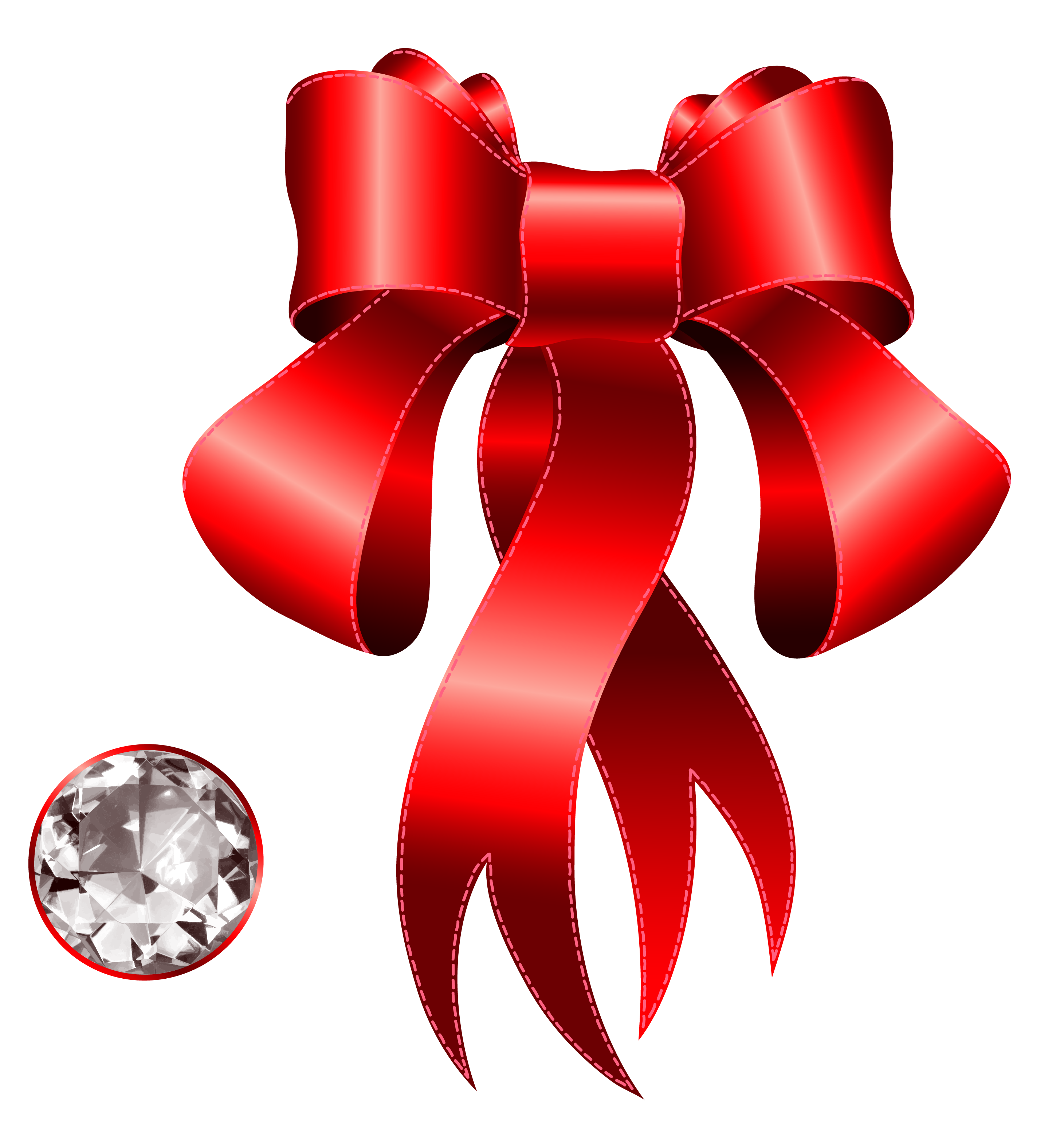 This Clipart Image: "Red Decorative Bow with Diamond PNG Clipart" is part of