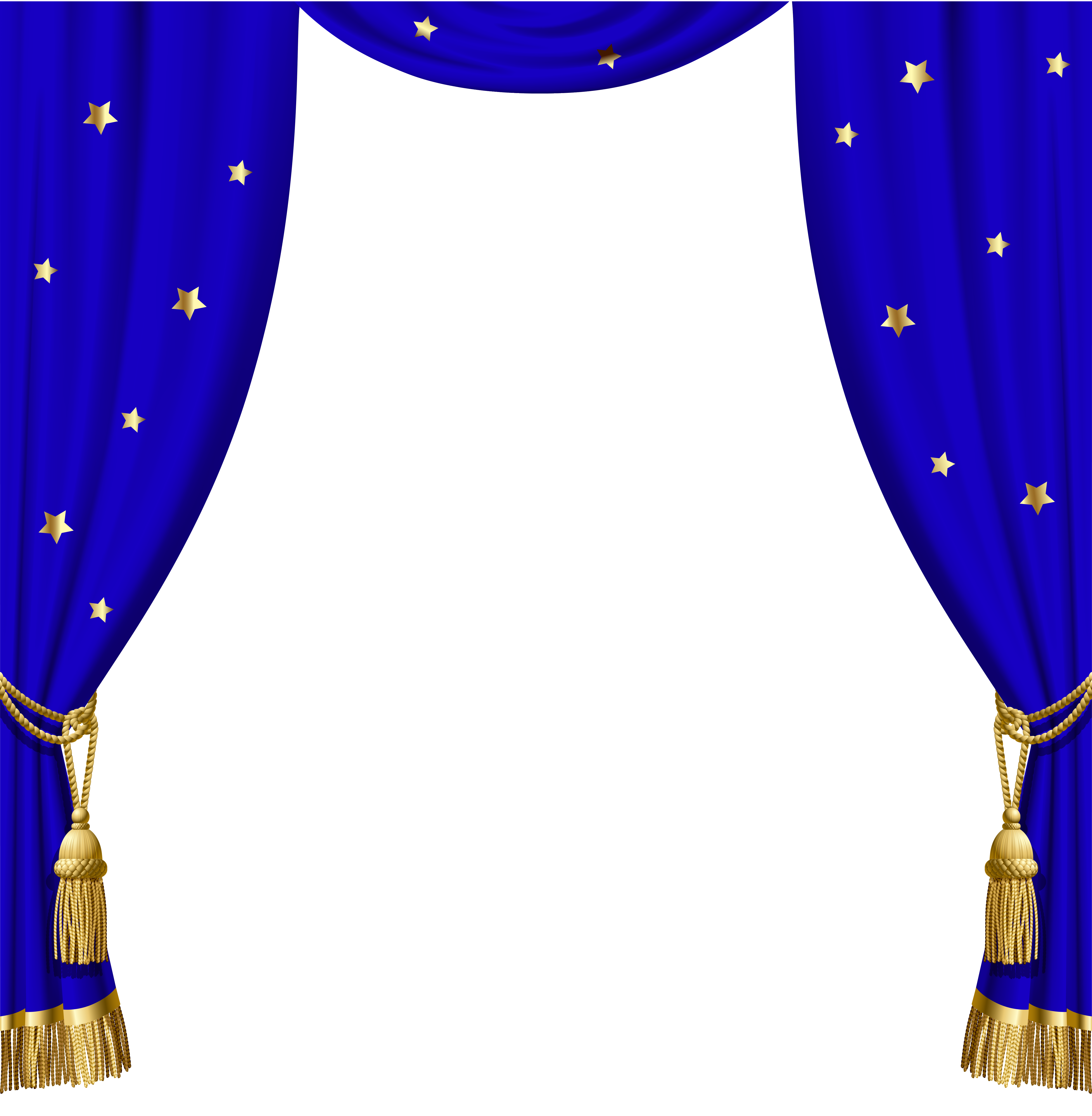 This Image: "Transparent Blue Curtains with Gold Tassels and Stars" is part of