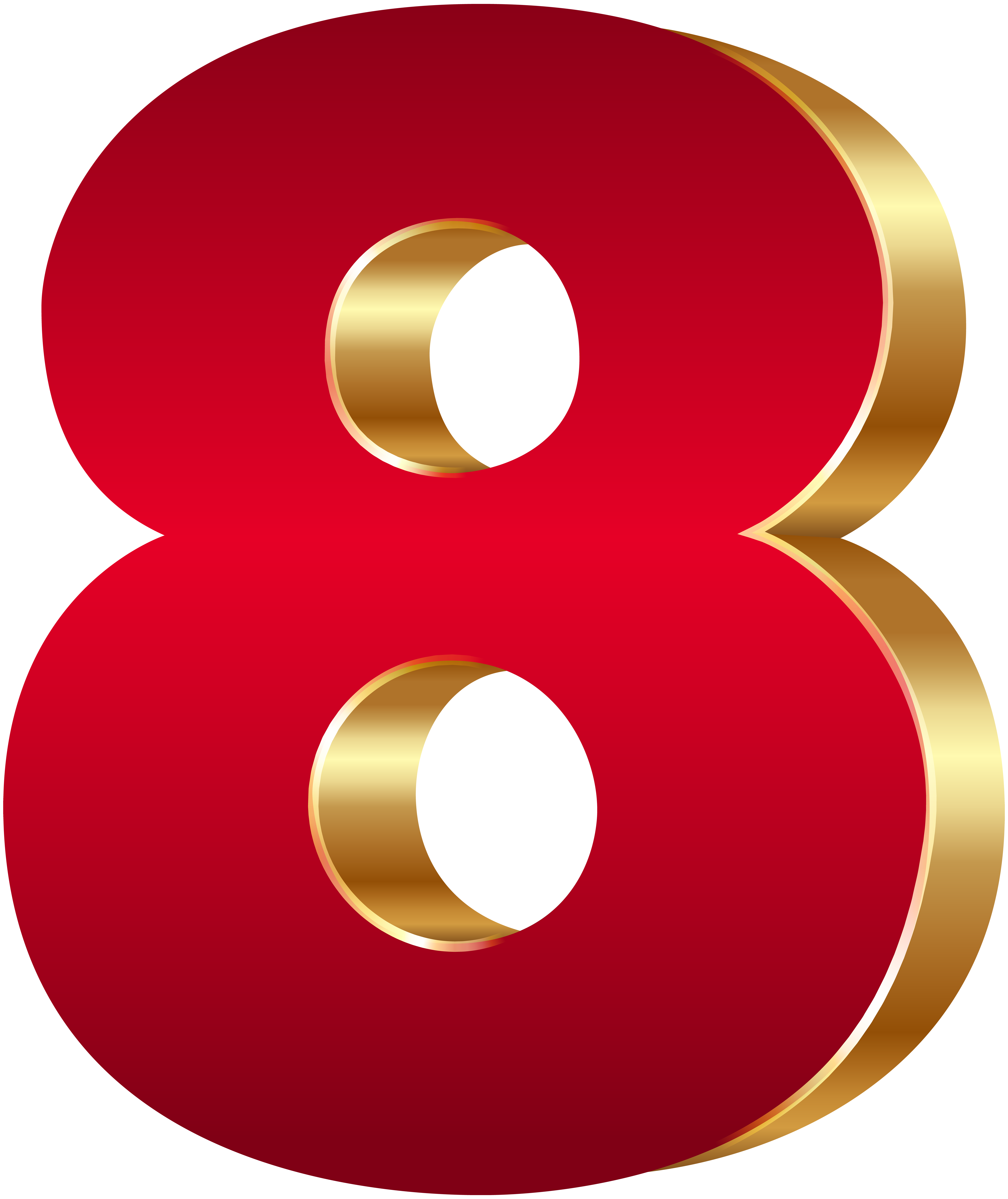 This Clipart Image: "3D Number Eight Red Gold PNG Clip Art Image" is part of