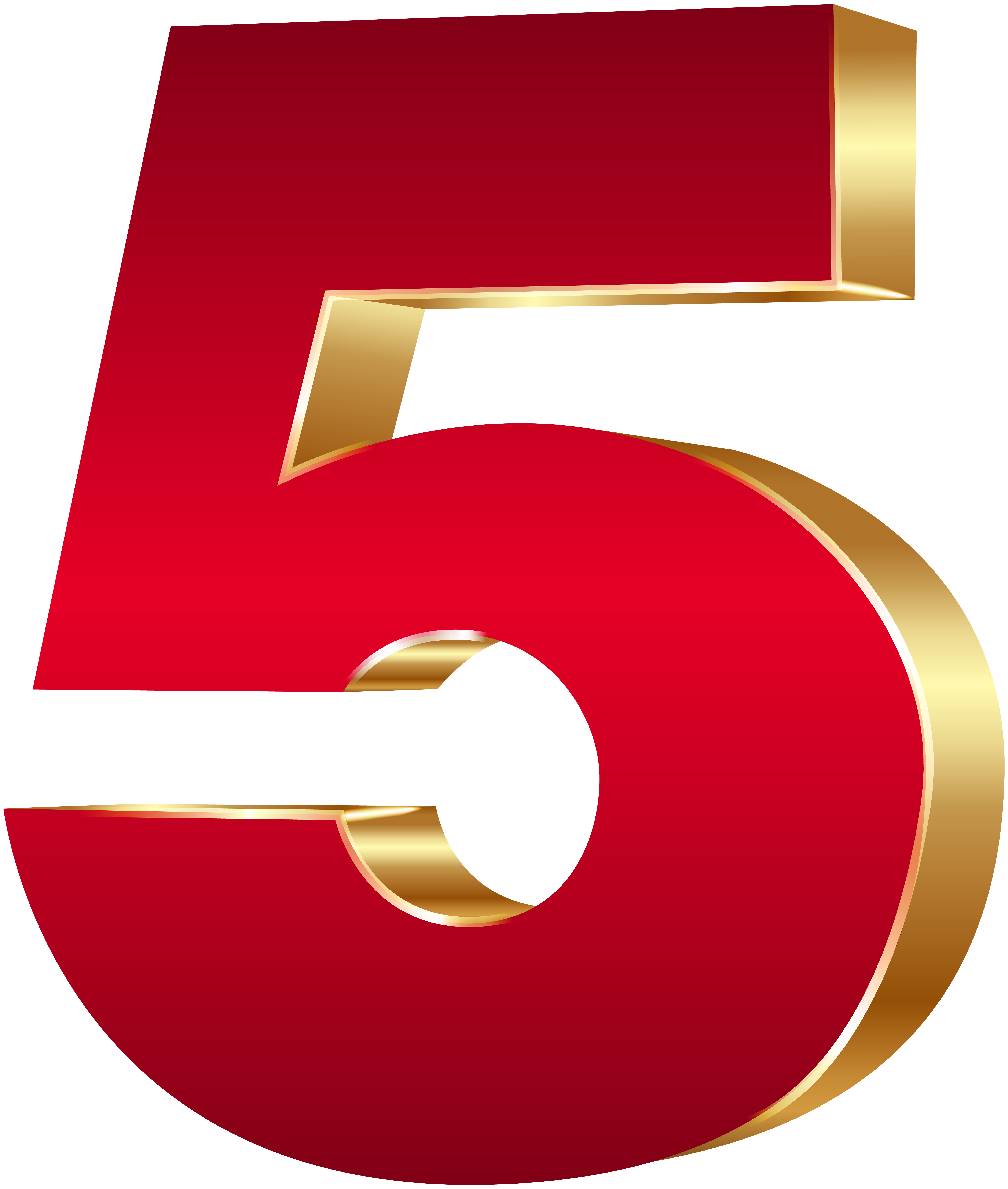 This Clipart Image: "3D Number Five Red Gold PNG Clip Art Image" is part of