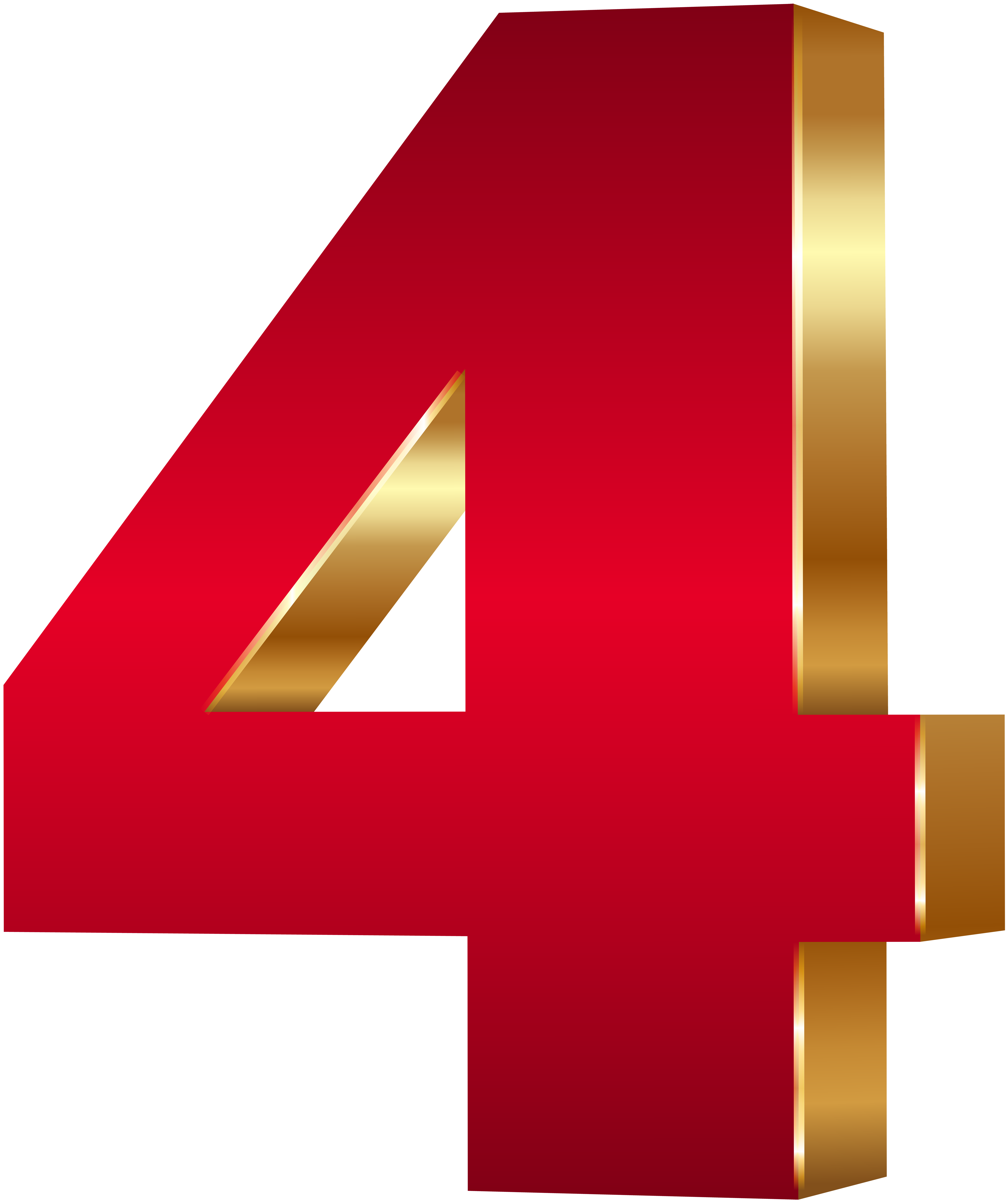 This Clipart Image: "3D Number Four Red Gold PNG Clip Art Image" is part of