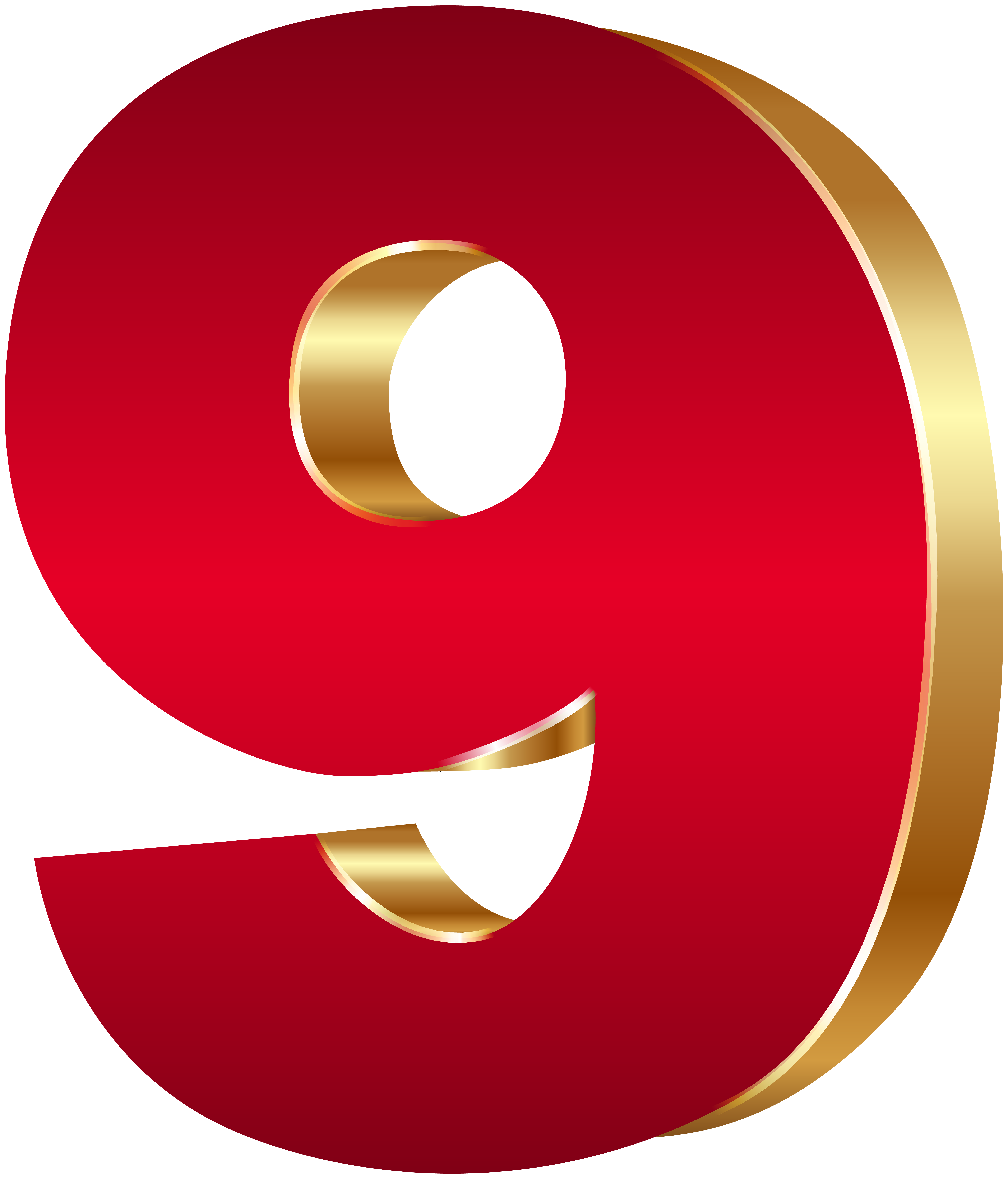 This Clipart Image: "3D Number Nine Red Gold PNG Clip Art Image" is part of