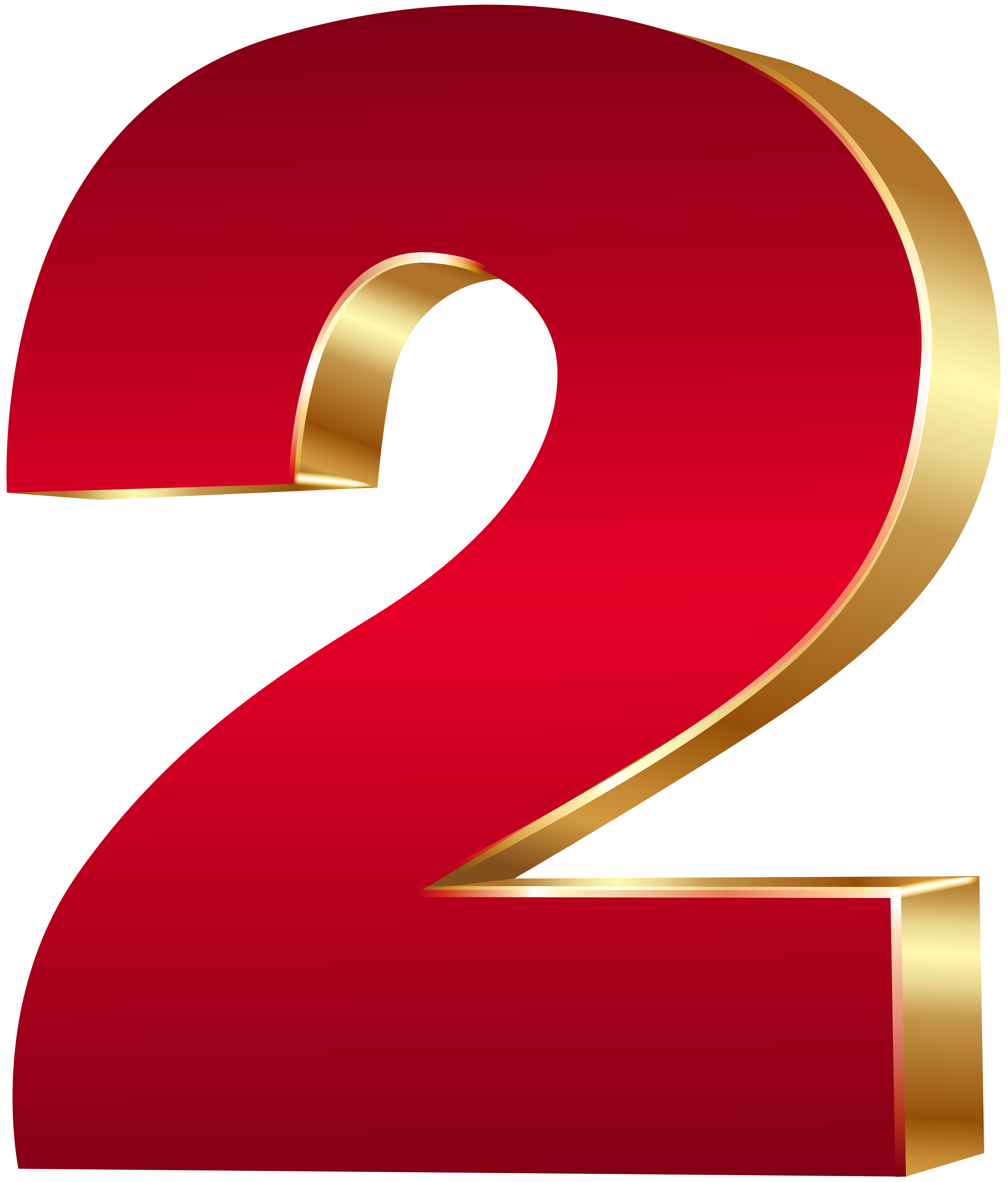 This Clipart Image: "3D Number Two Red Gold PNG Clip Art Image" is part of