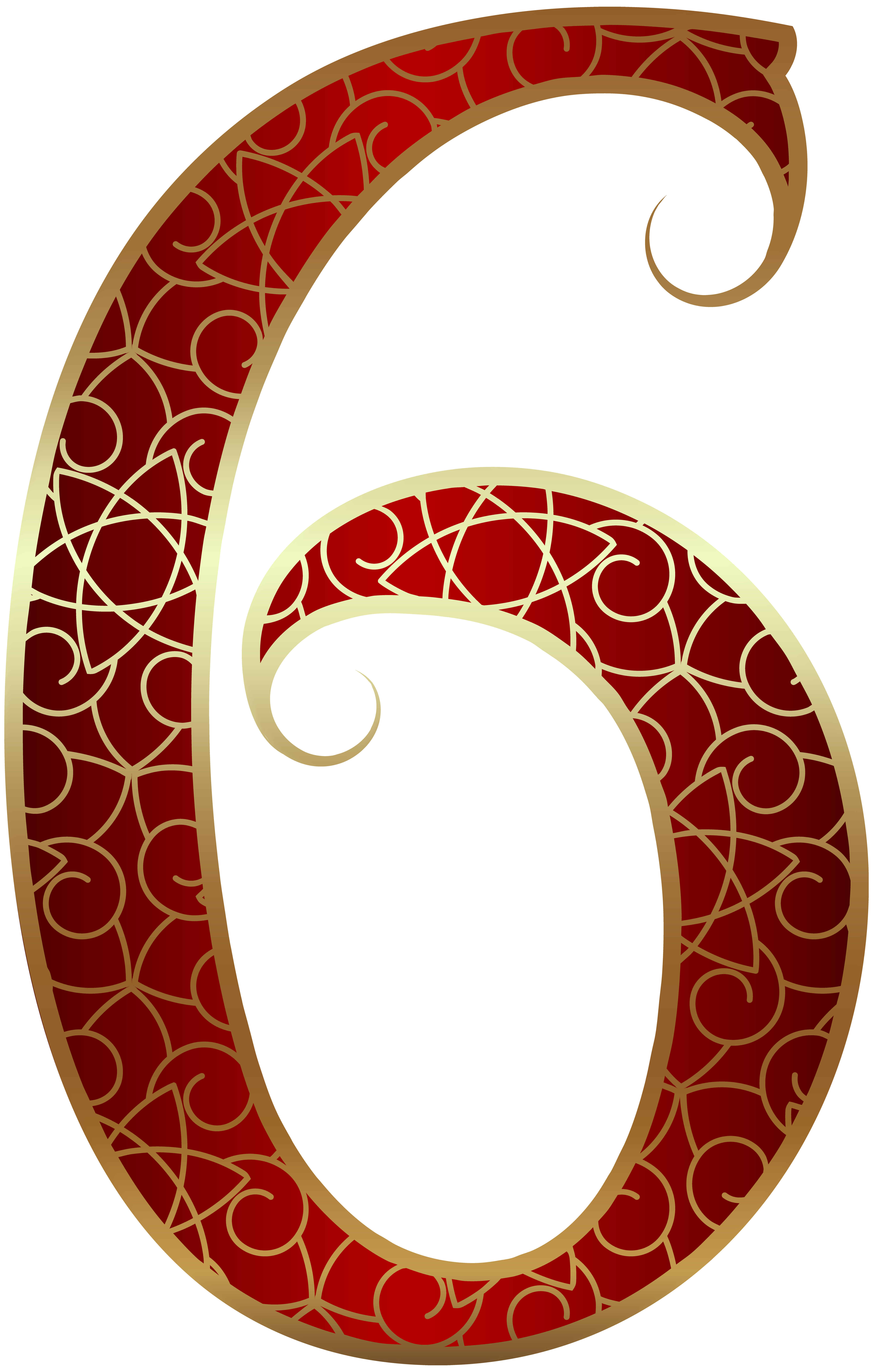 This Clipart Image: "Gold Red Number Six PNG Clip Art Image" is part of