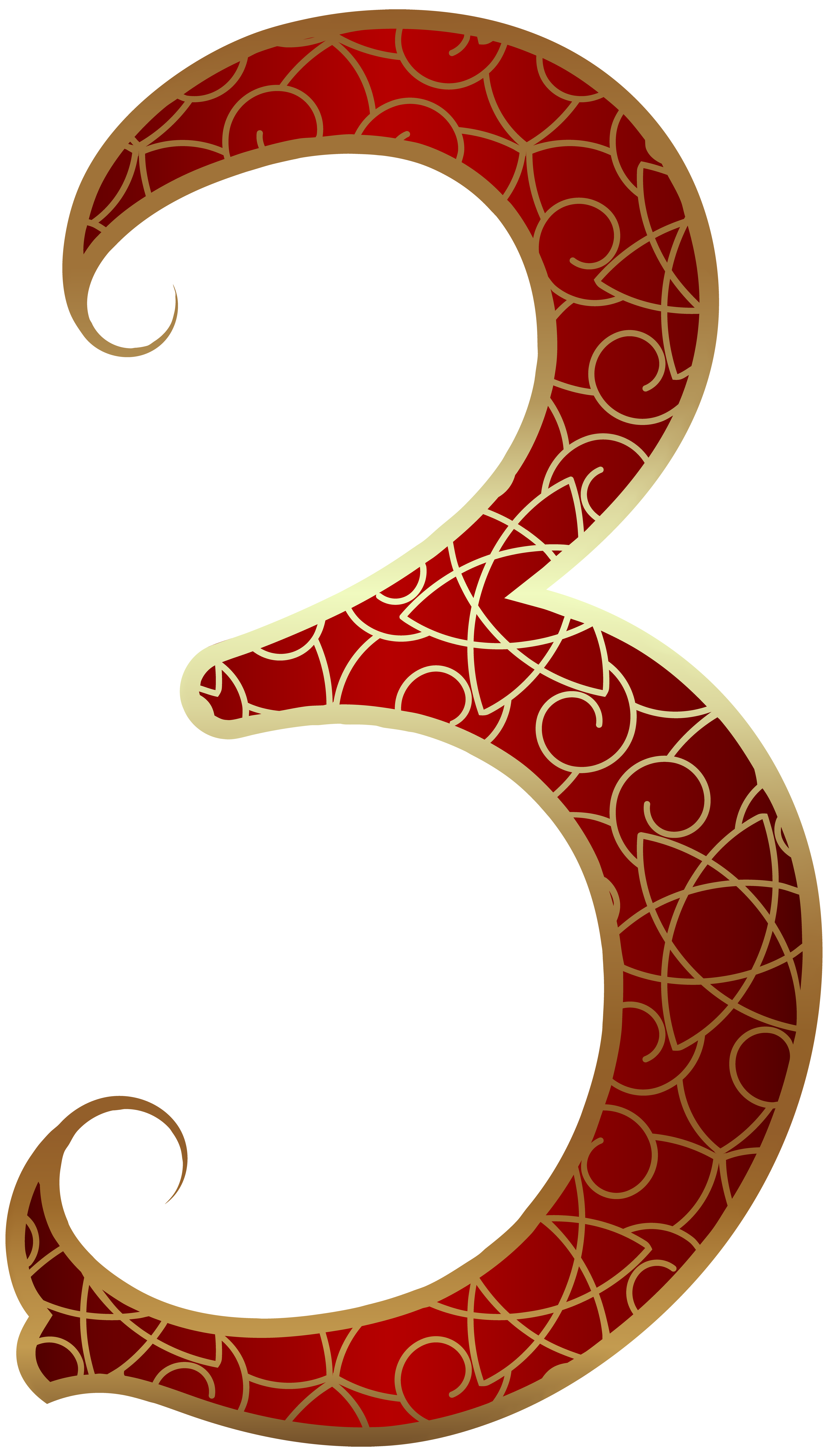 This Clipart Image: "Gold Red Number Three PNG Clip Art Image" is part of
