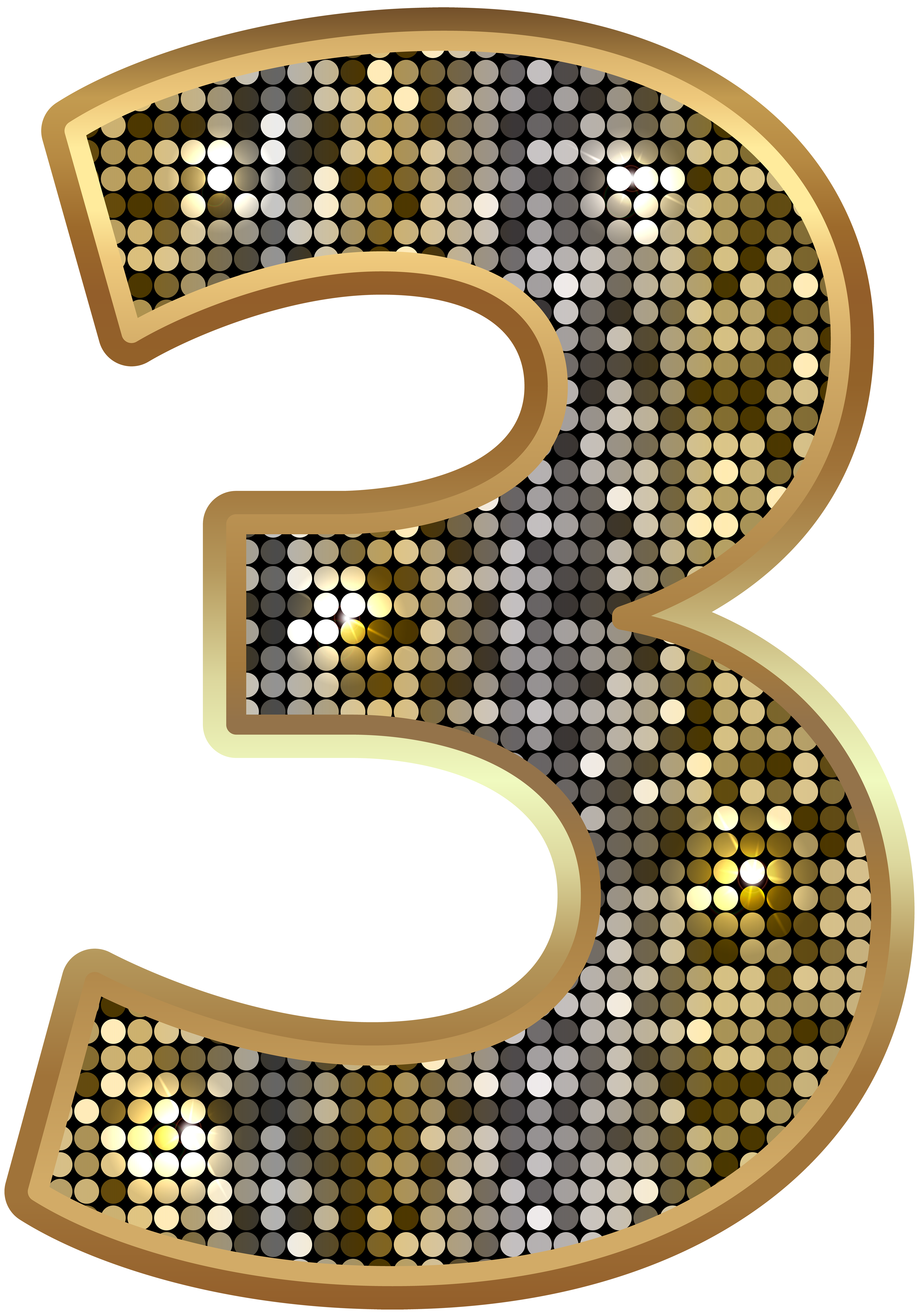 This Clipart Image: "Number Three Deco Gold PNG Clip Art Image" is part of