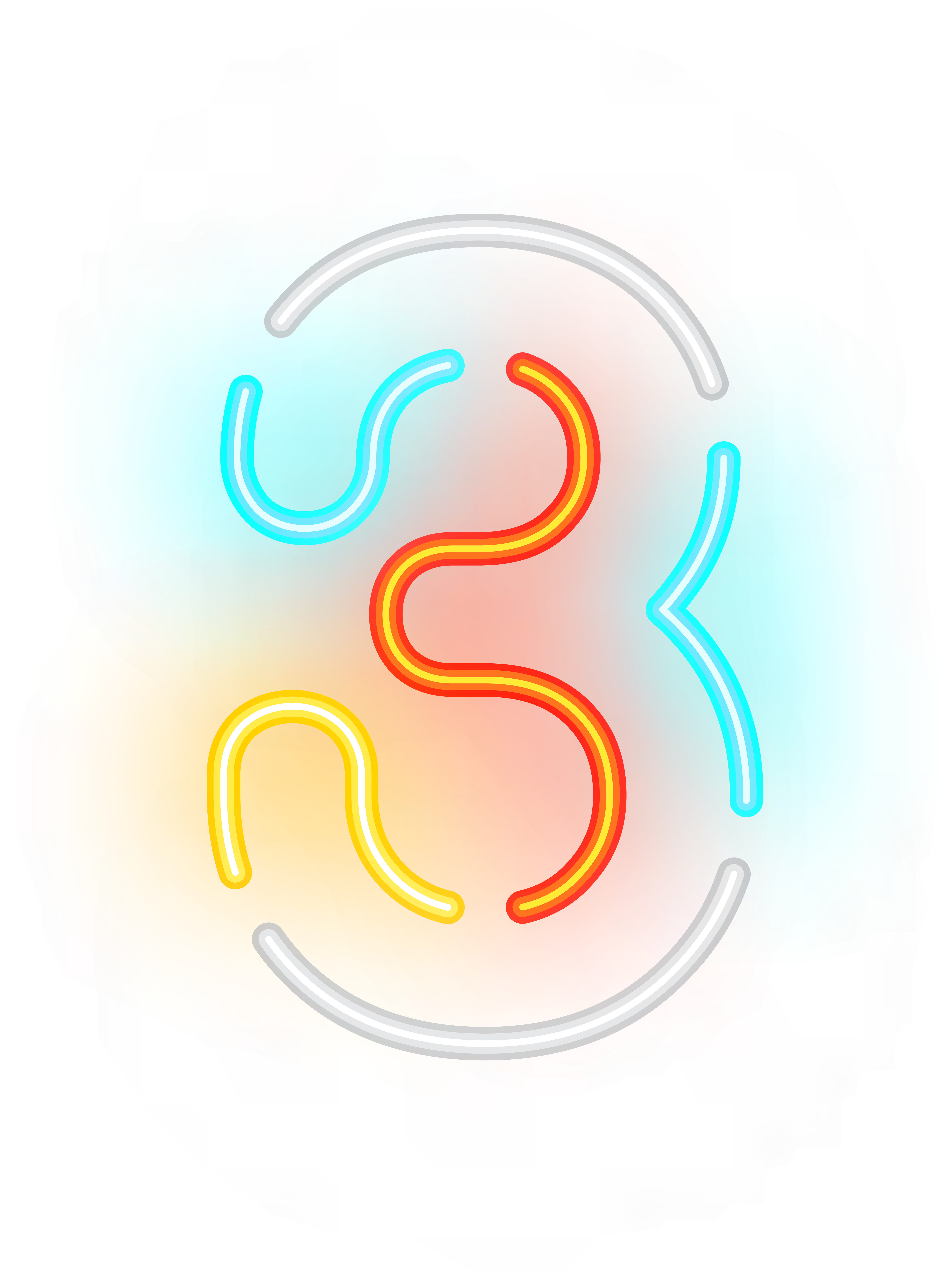 This Clipart Image: "Number Three Neon Transparent Clip Art Image" is part of