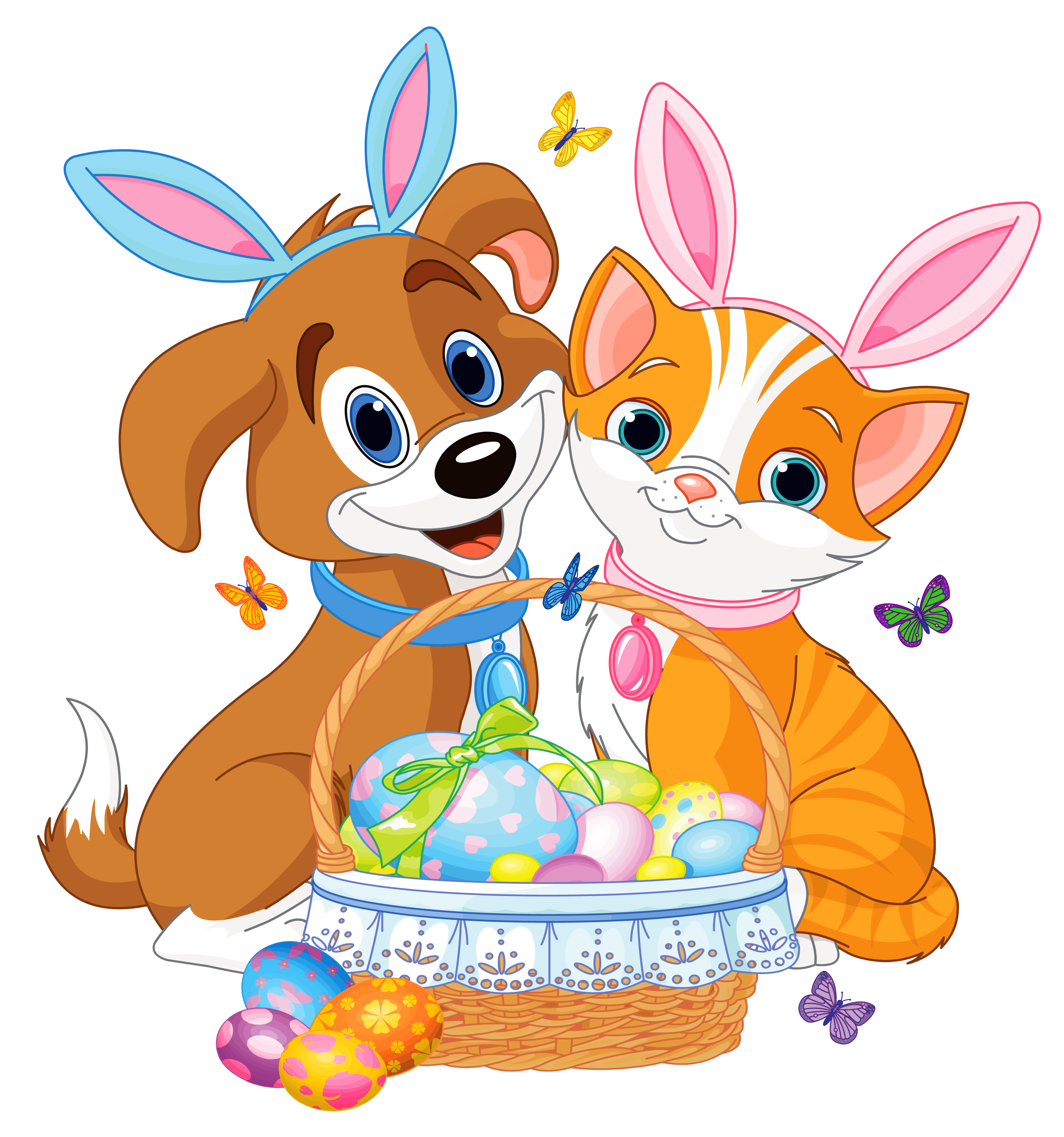 This Image: "Cute Puppy and Kitten with Easter Bunny Ears and Basket" is part of