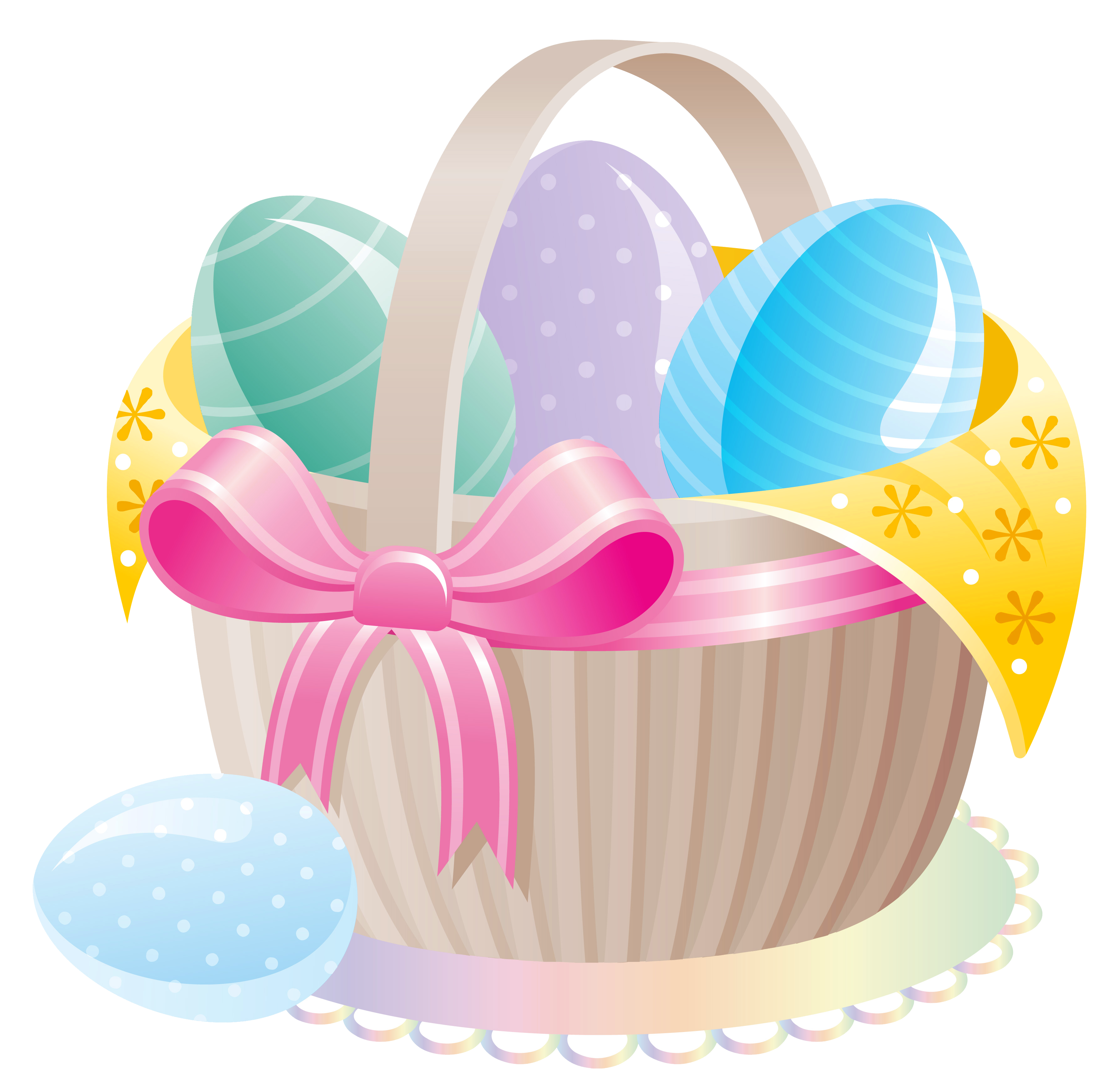This Clipart Image: "Delicate Basket with Easter Eggs PNG Clipart" is part of