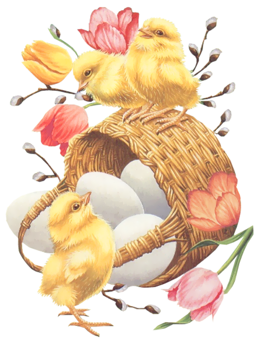 This Image: "Easter Basket with Eggs Chickens and Tulips PNG Picture" is part of
