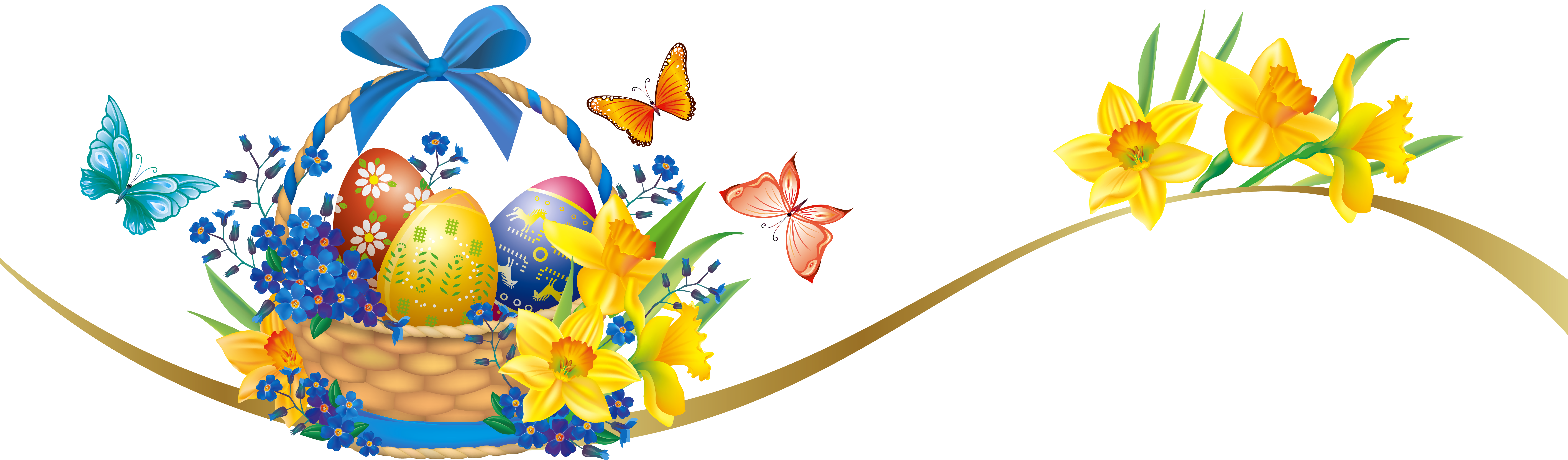 This Clipart Image: "Easter Deco with Egg Basket PNG Clipart Picture" is part of