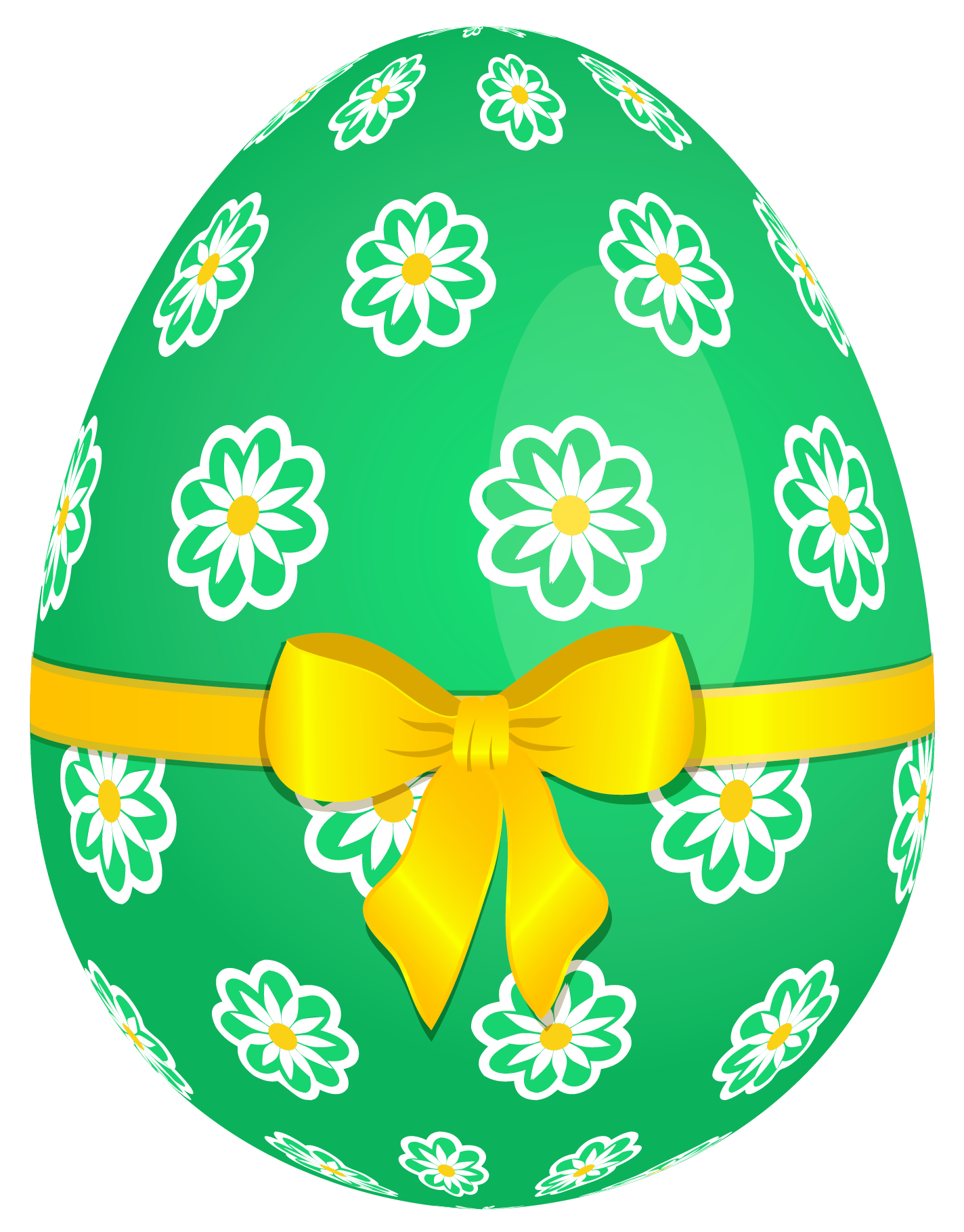 This Image: "Green Easter Egg with Flowers and Yellow Bow PNG Picture" is part of