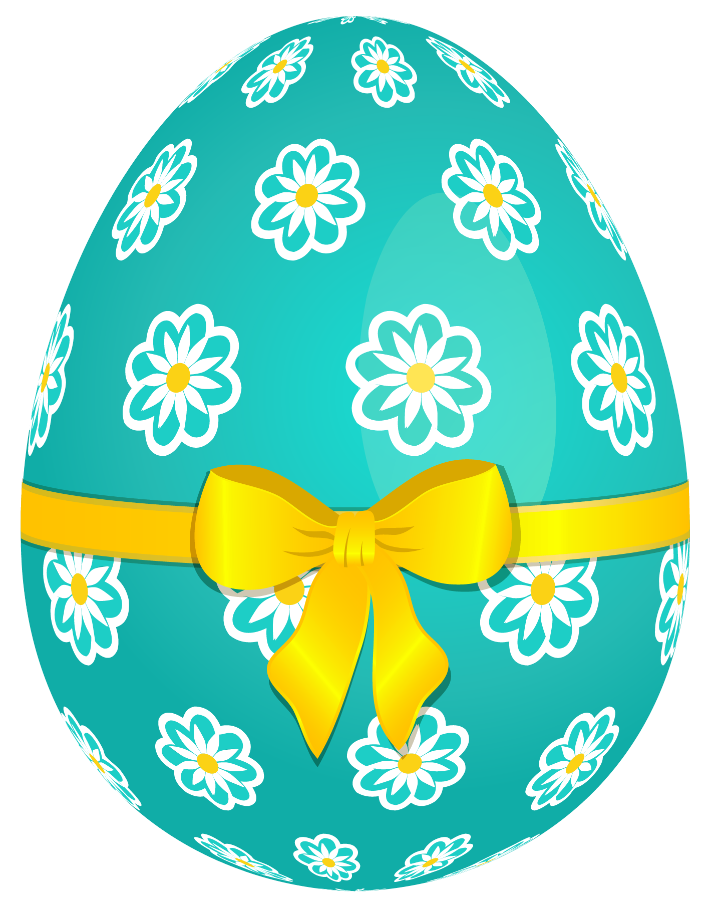 This Image: "Sky Blue Easter Egg with Flowers and Yellow Bow PNG Picture" is part of