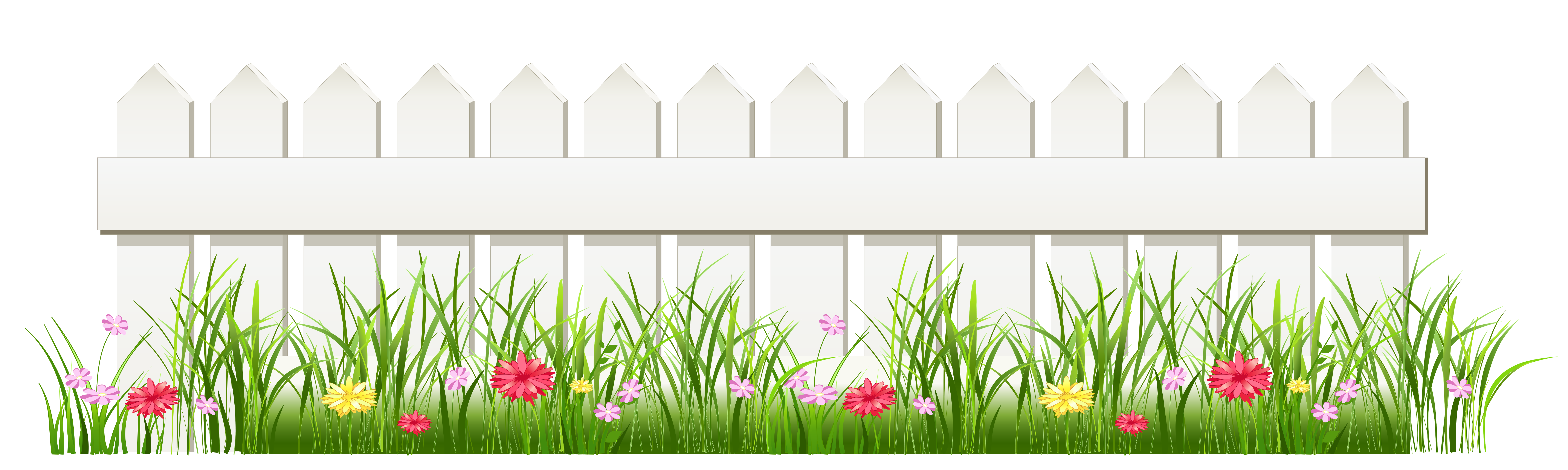 This Clipart Image: "Transparent White Fence with Grass PNG Clipart" is part of