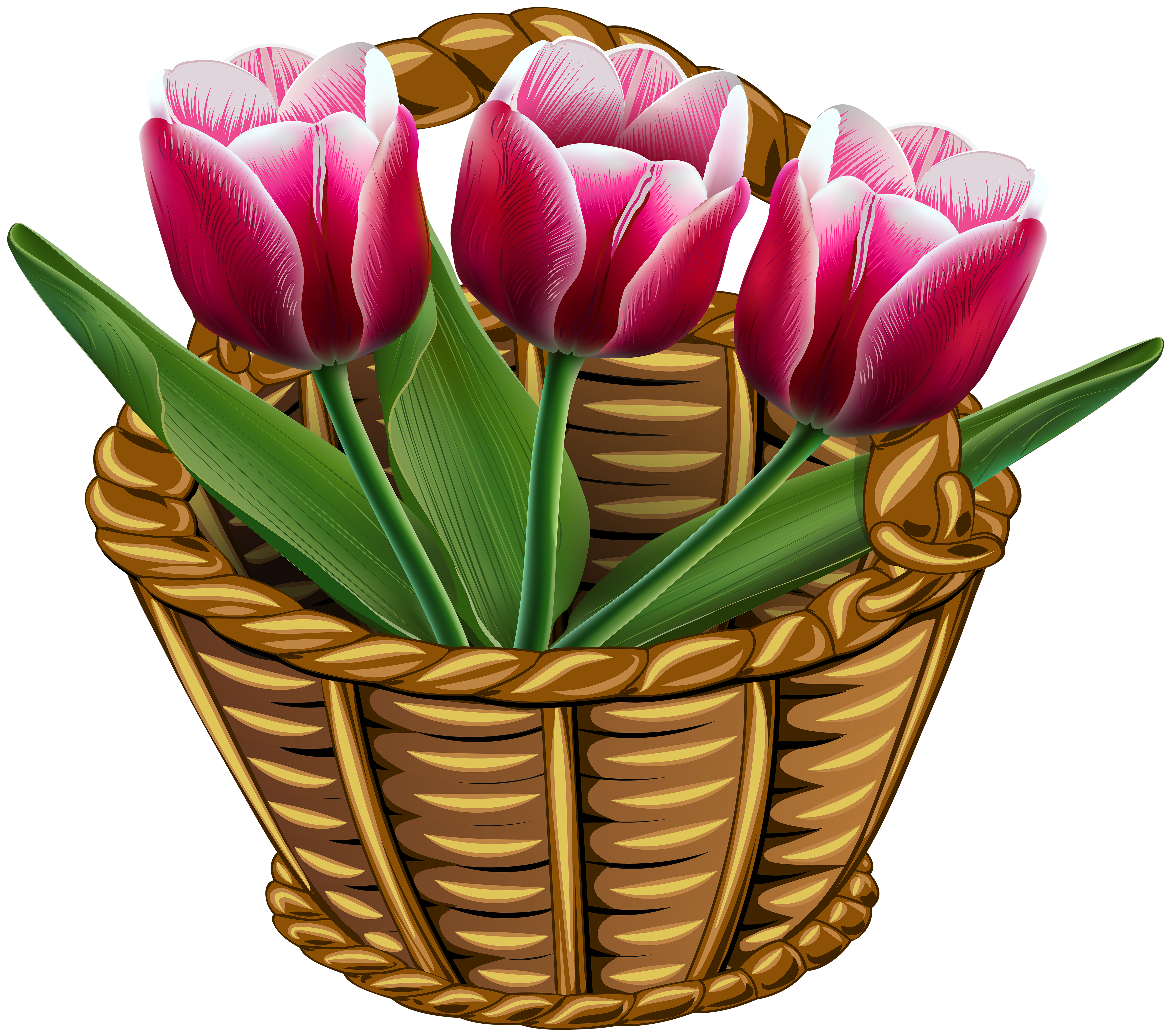 This Clipart Image: "Basket with Tulips Transparent PNG Clip Art Image" is part of